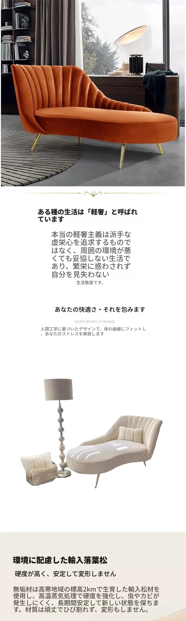 貴妃椅178CM左方向(フランネルオレンジ)