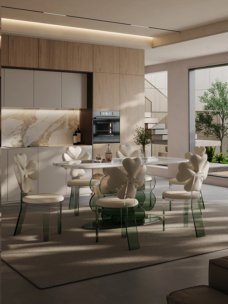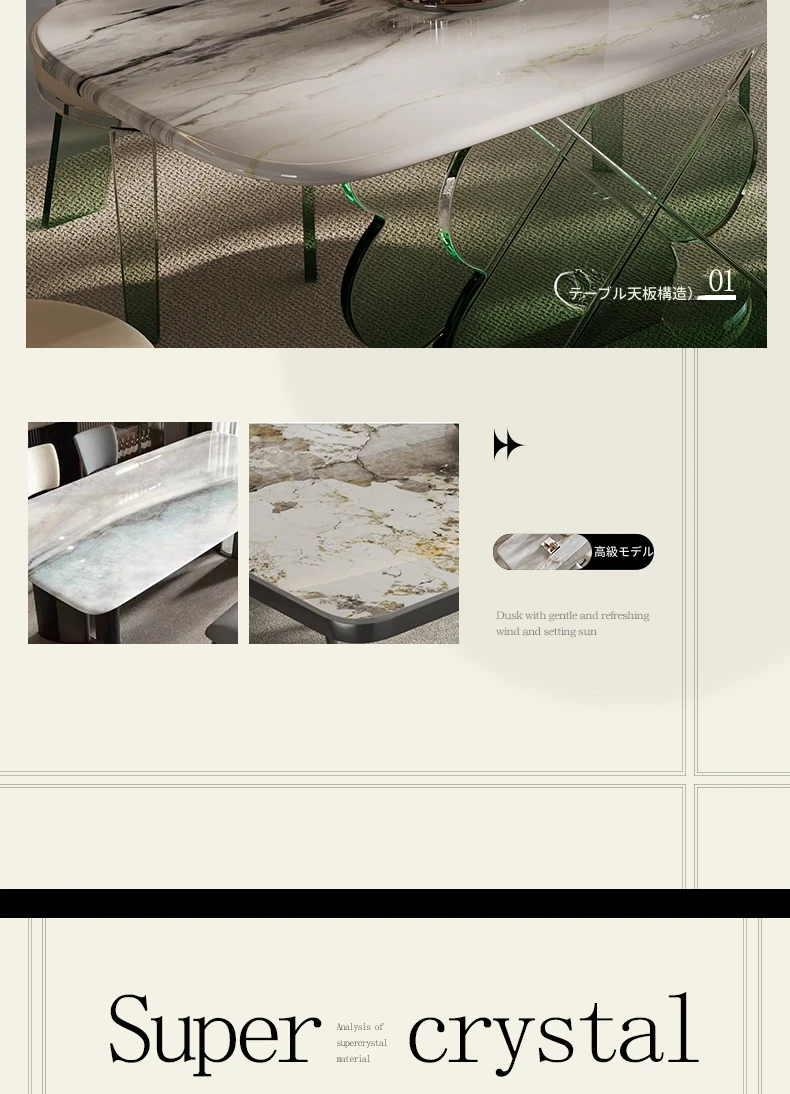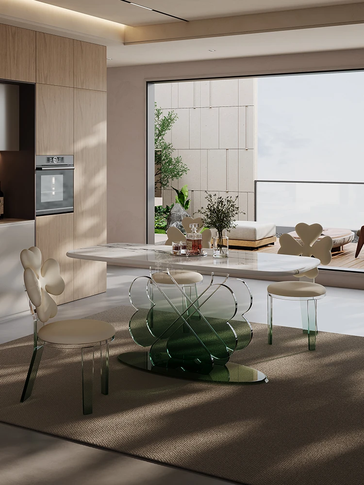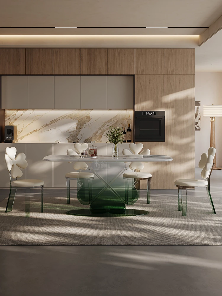超高透明感!現代的アクリル浮遊式ロングテーブル、ラグジュアリーな超晶石デザイン。シンプルでスタイリッシュなダイニングセット、上質な空間を演出します。