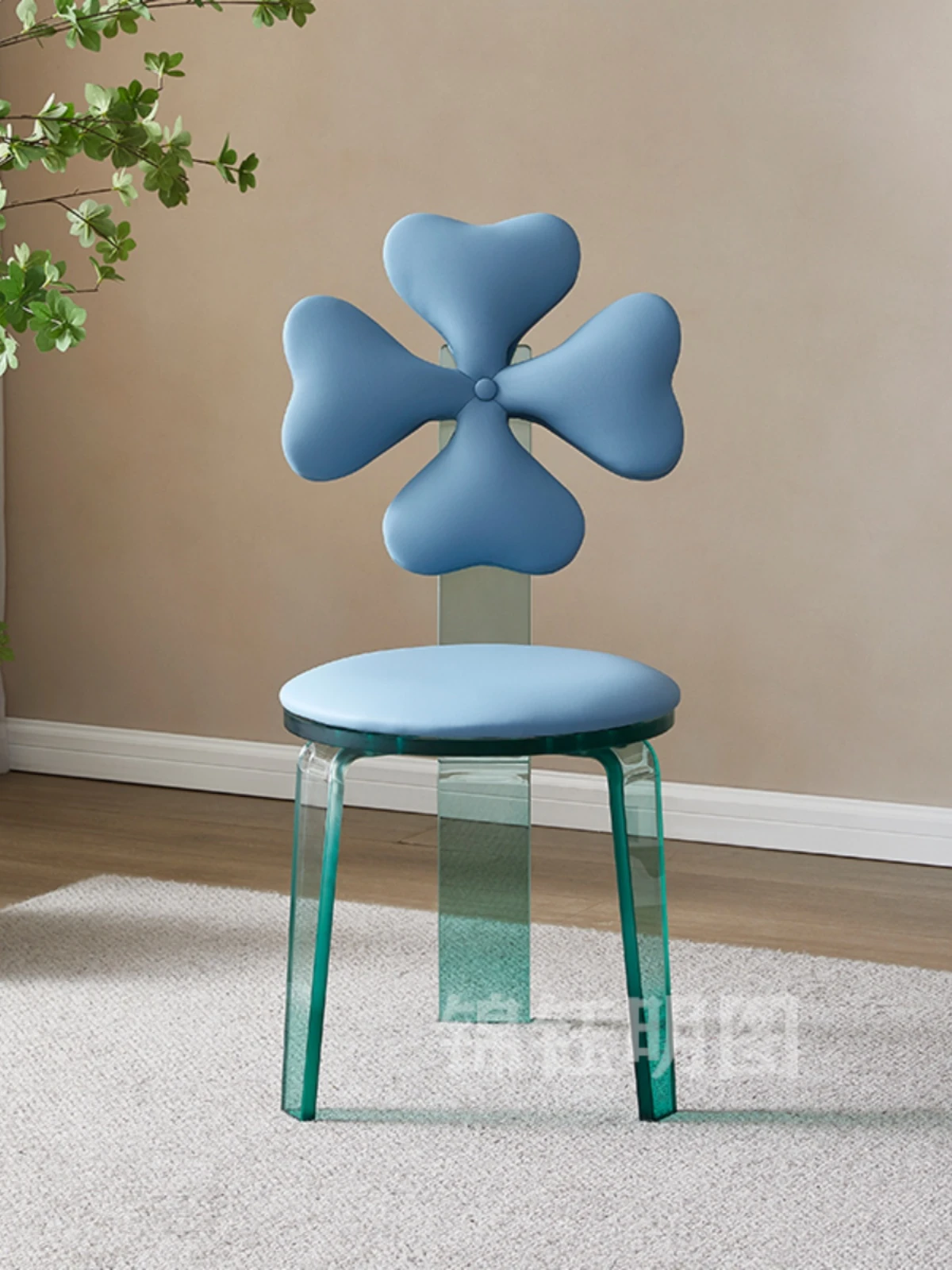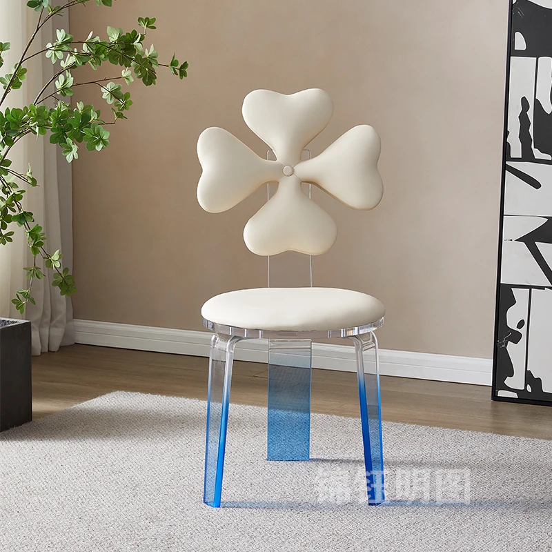 アイボリーレザーとブルーアクリルのダイニングチェア