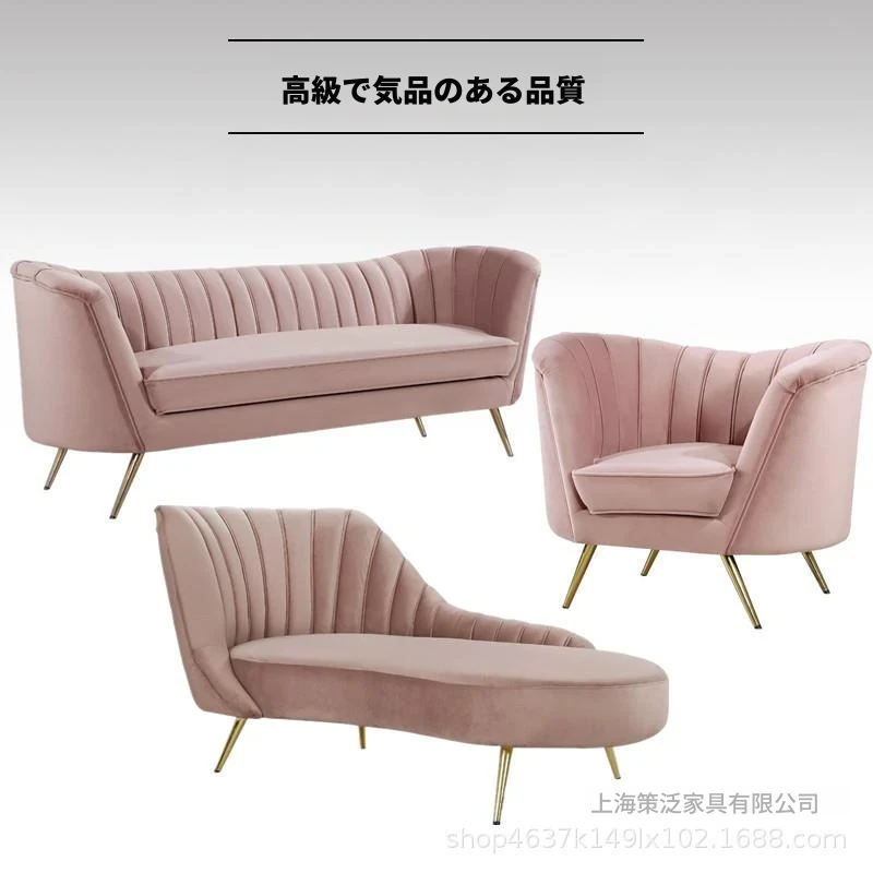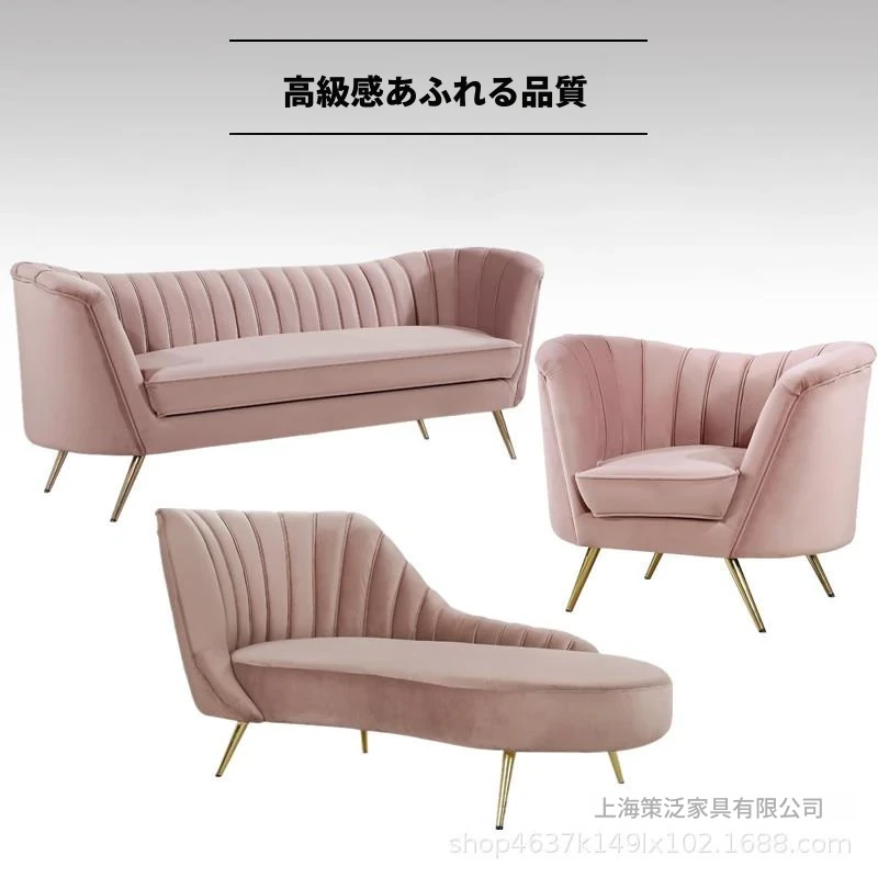 【香港送料無料】スタイリッシュなテクスチャー!美容院や小さなリビングに最適なモダンアーチ型ソファ。軽やかなラグジュアリーで、心地よい接客空間を演出します。