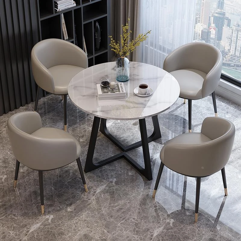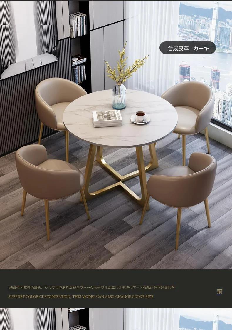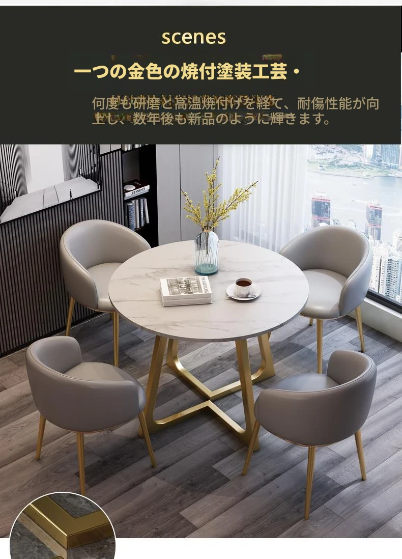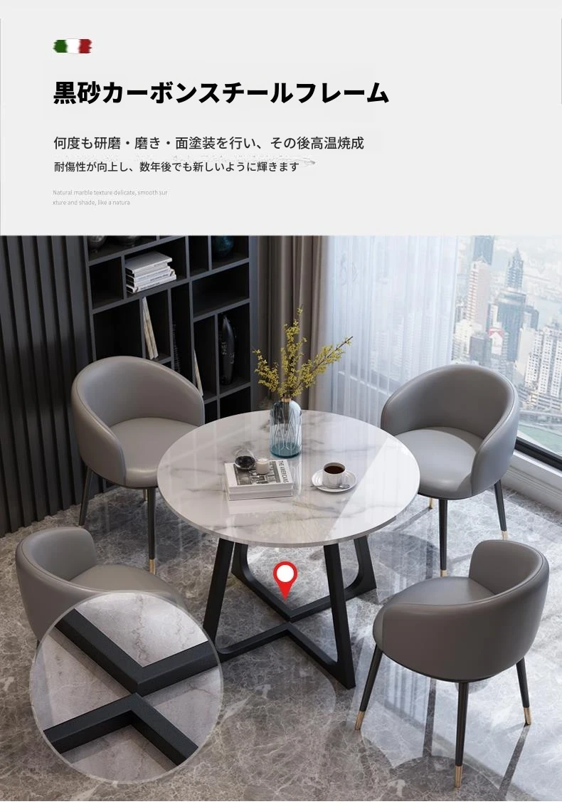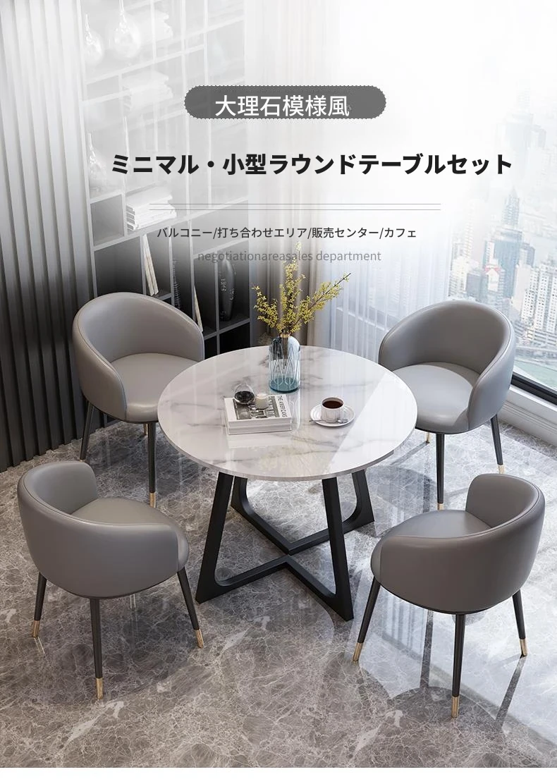 大理石デザインの軽やかラグジュアリーな小丸テーブル&チェアセット - モダンな営業所に最適な商用オフィス用会議テーブル、スタイリッシュなダイニング体験を提供!