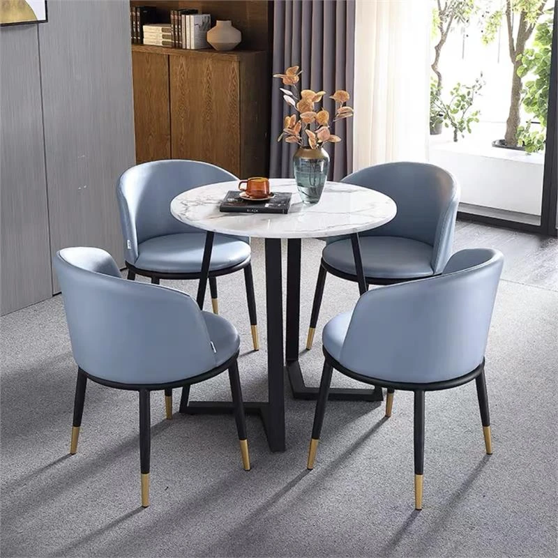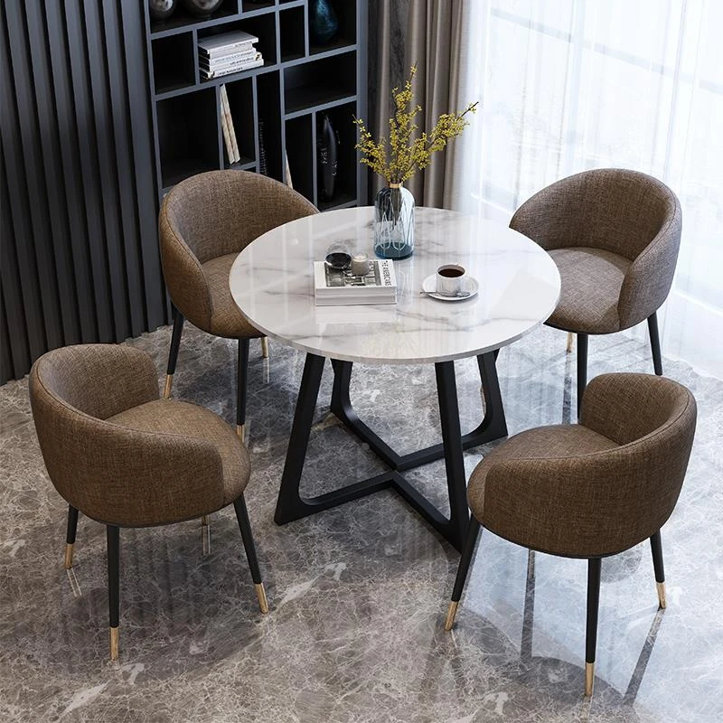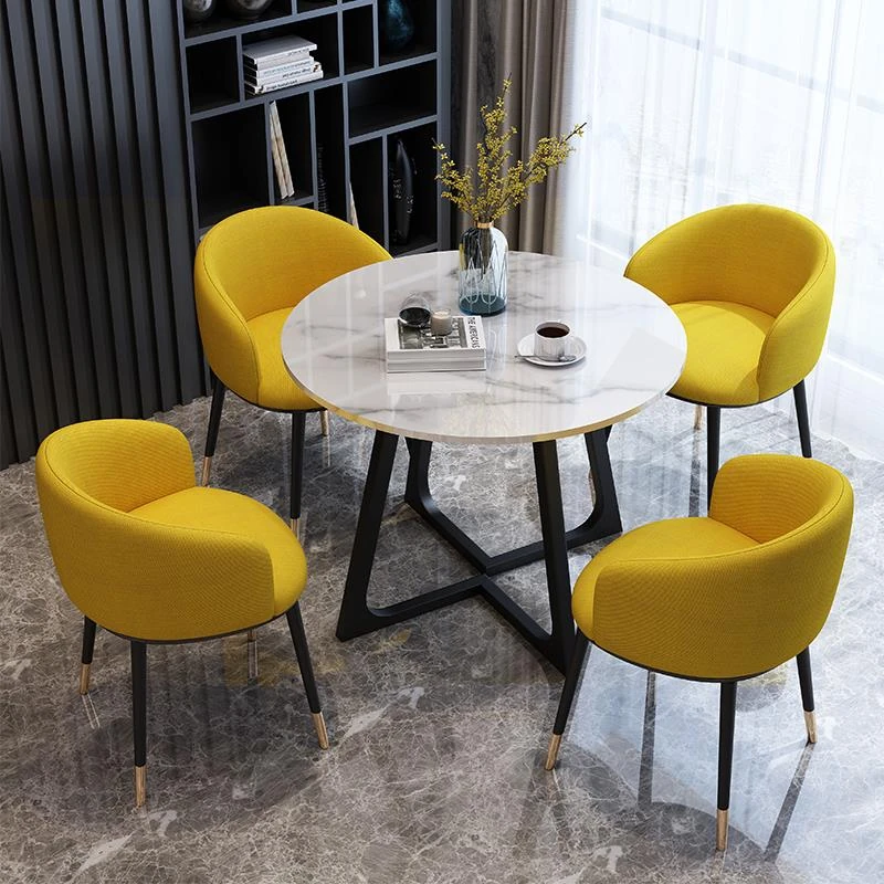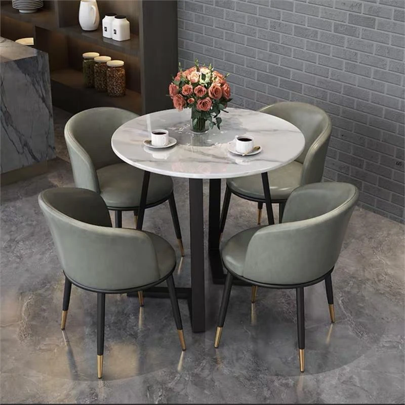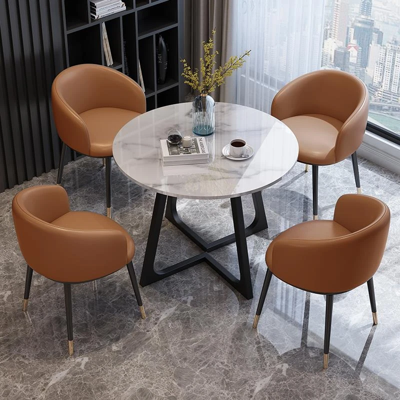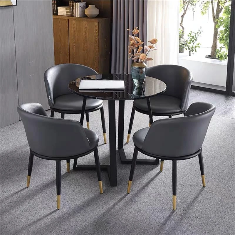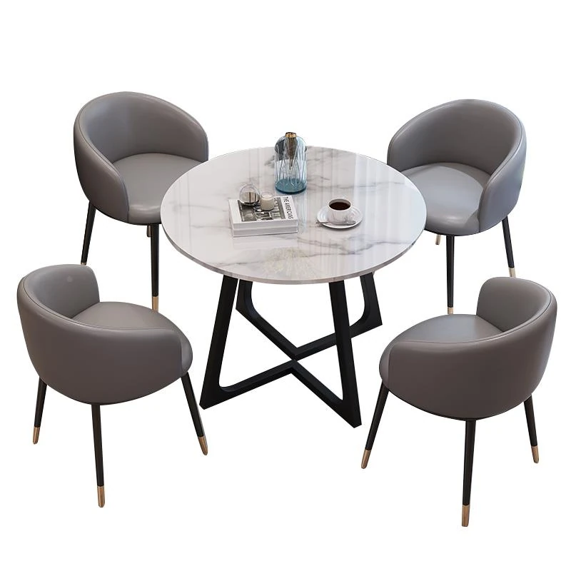 大理石デザインの軽やかラグジュアリーな小丸テーブル&チェアセット - モダンな営業所に最適な商用オフィス用会議テーブル、スタイリッシュなダイニング体験を提供!