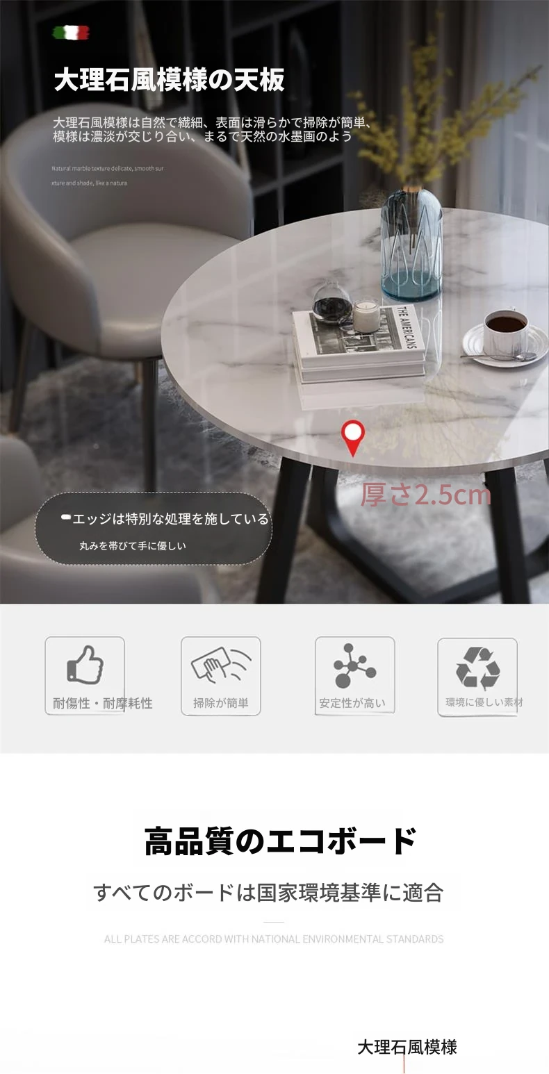 単独テーブル(直径80デフォルト擬似大理石模様)岩板または大理石+300