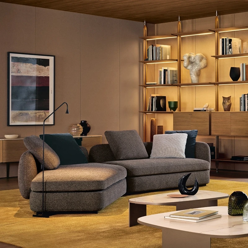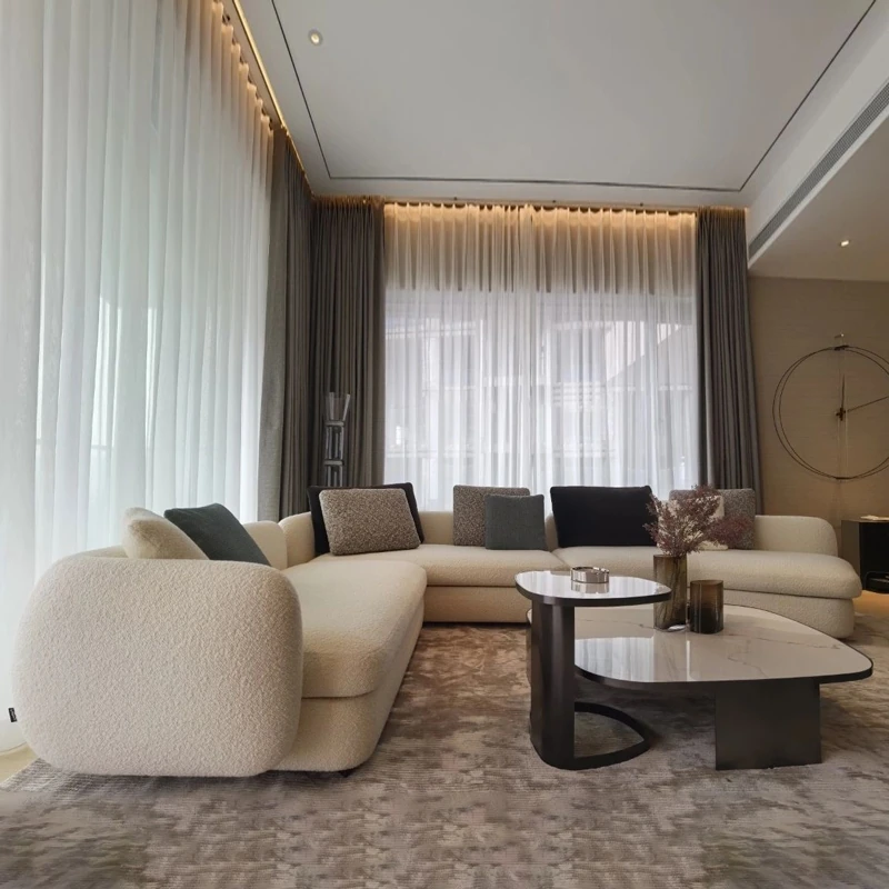 現代的ミニマルな曲線デザイン、ハイエンドファブリックソファ。アメリカンラグジュアリーのクリエイティブデザイン、大型リビングに最適なアイテム!あなたの空間を洗練された印象に変える一品です。