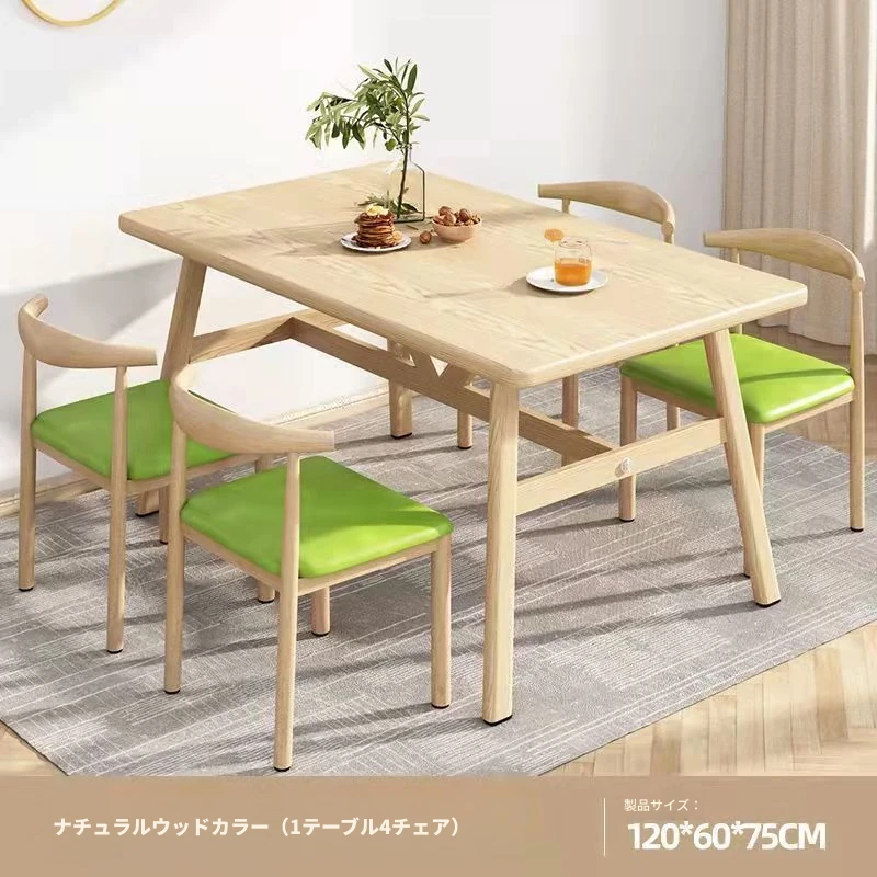 120*60/ナチュラルウッド色1テーブル4椅子-グリーンレザー座布団