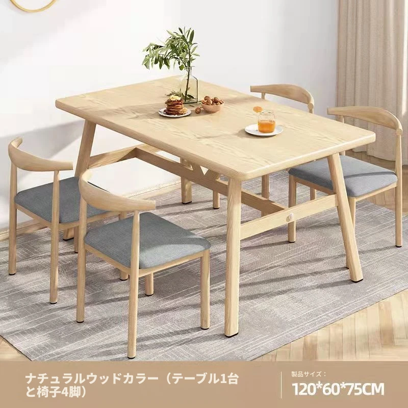 120*60/ナチュラルウッド色1テーブル4椅子-グレー麻座布団