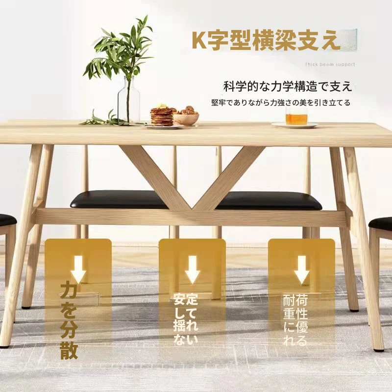 120*60/ナチュラルウッド色1テーブル4椅子-イエローレザー座布団