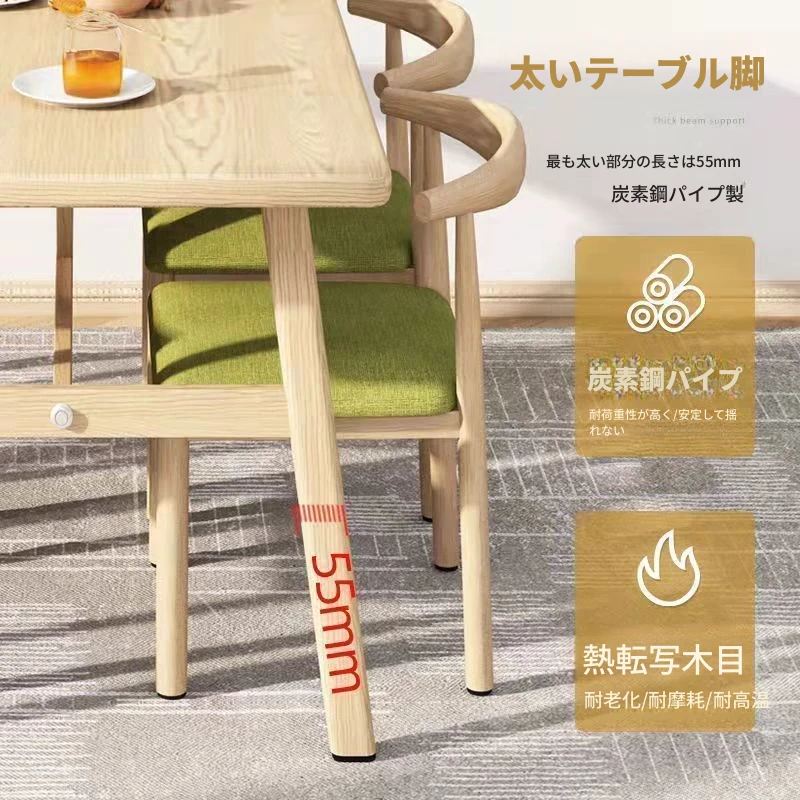 100*60/ナチュラルウッド色1テーブル4椅子-グリーン麻座布団