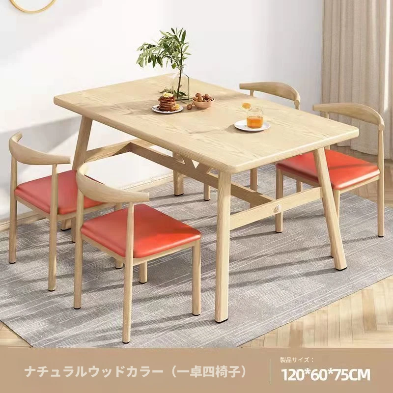 120*60/ナチュラルウッド色1テーブル4椅子-オレンジレザー座布団