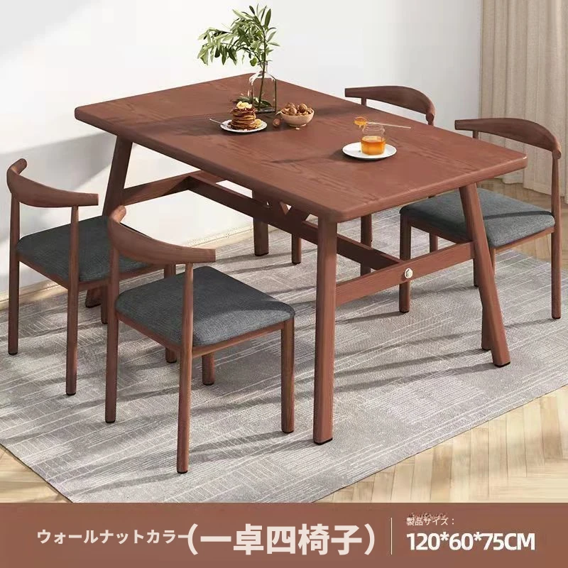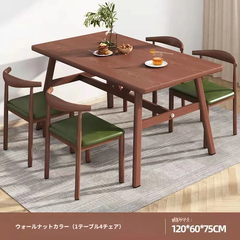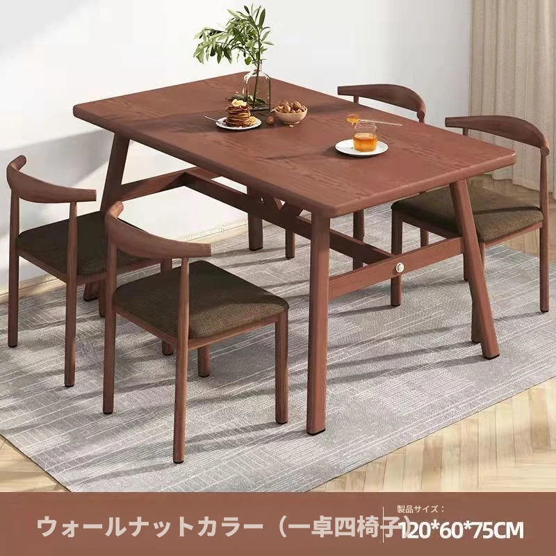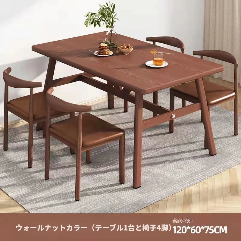 120*60/ウォールナット色1テーブル4椅子-ブラウンレザー座布団