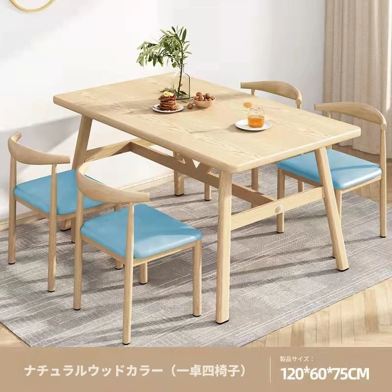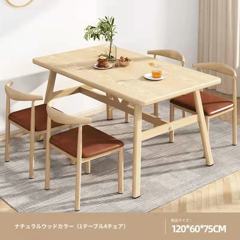 120*60/ナチュラルウッド色1テーブル4椅子-ブラウンレザー座布団