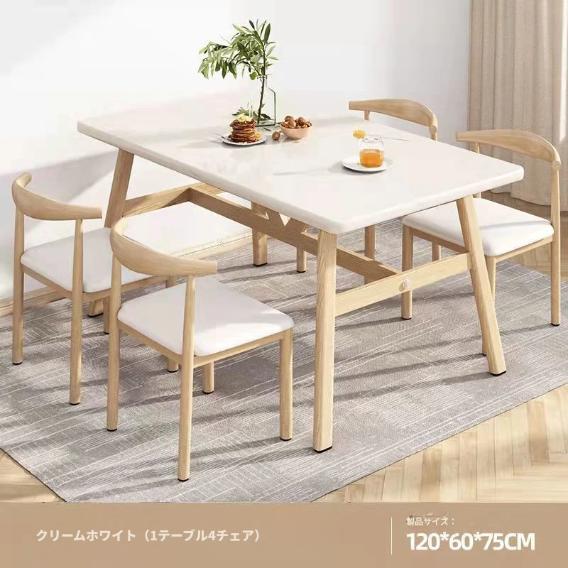 100*60/ナチュラルウッド色1テーブル4椅子-ホワイトレザー座布団