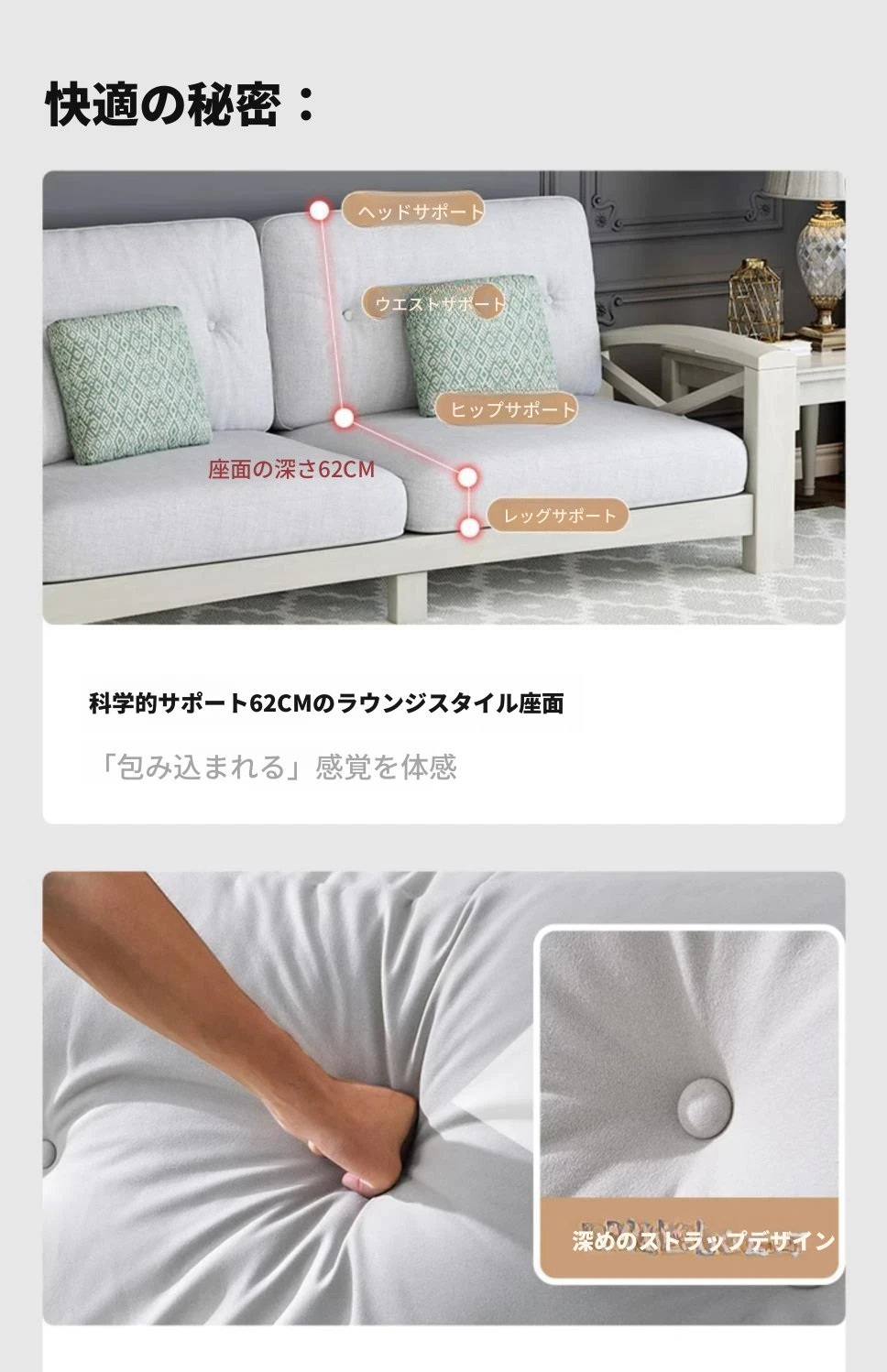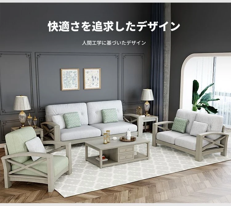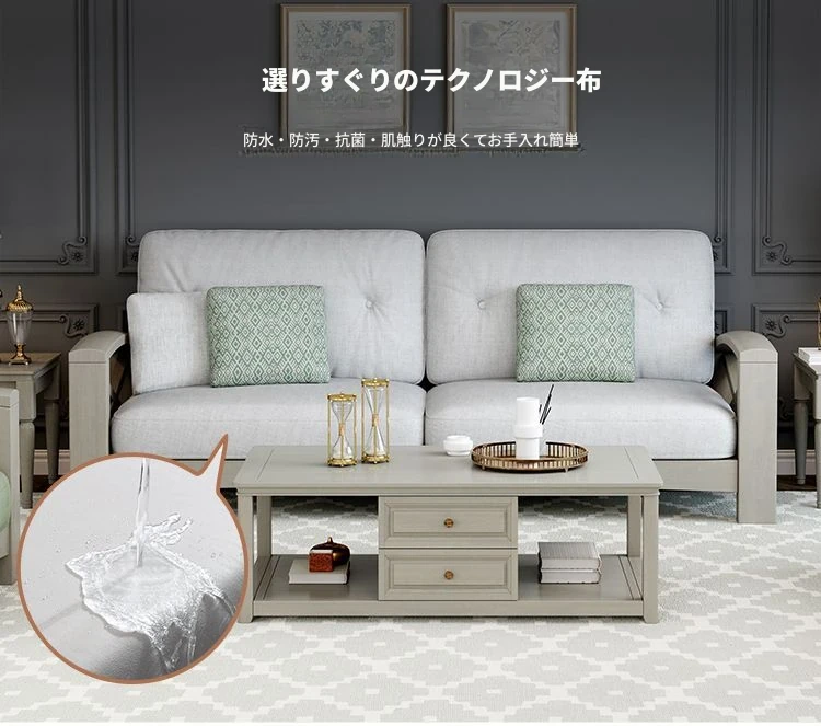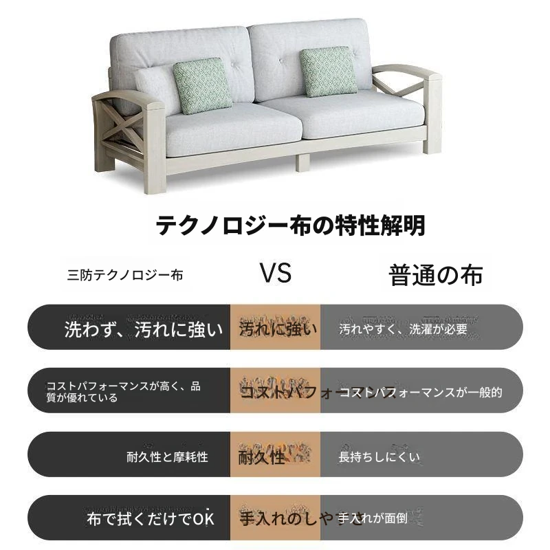 リビング向け現代的シンプルデザイン!お手入れ簡単なテクノロジー布製グレーソファ。小型住宅に最適な3人掛けアメリカンライトラグジュアリー天然木ソファセット。快適さとスタイルを両立した一品!