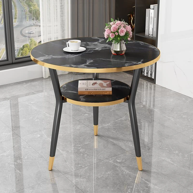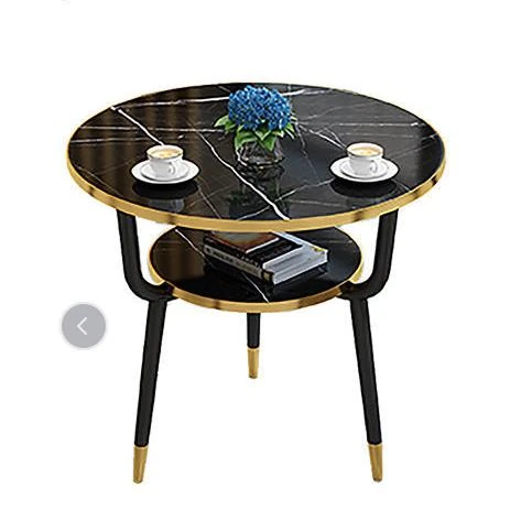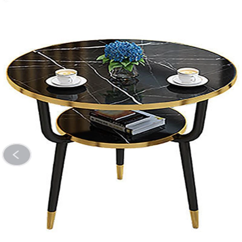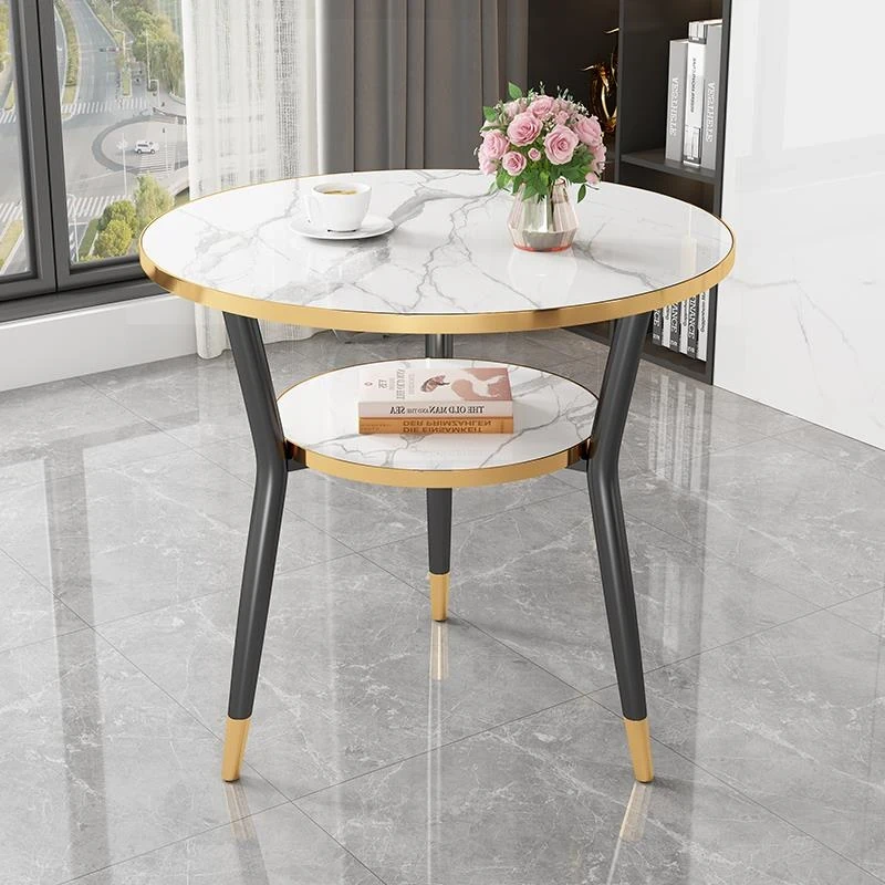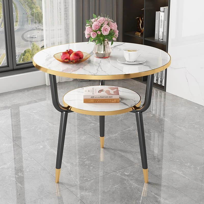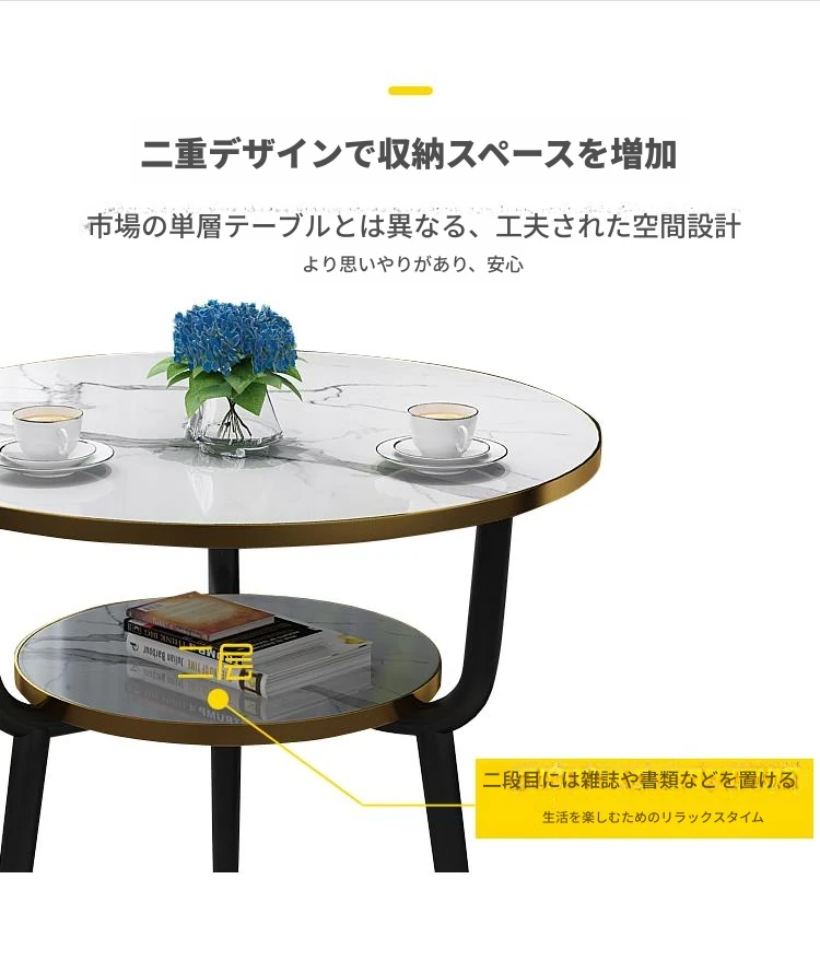 現代的な軽奢スタイルの大理石製コーヒーテーブル - リビングやバルコニー、ホテルの客室、美容院に最適!シンプルでありながら洗練されたデザイン、二段構造で実用性も抜群!あなたの空間をおしゃれに演出します。