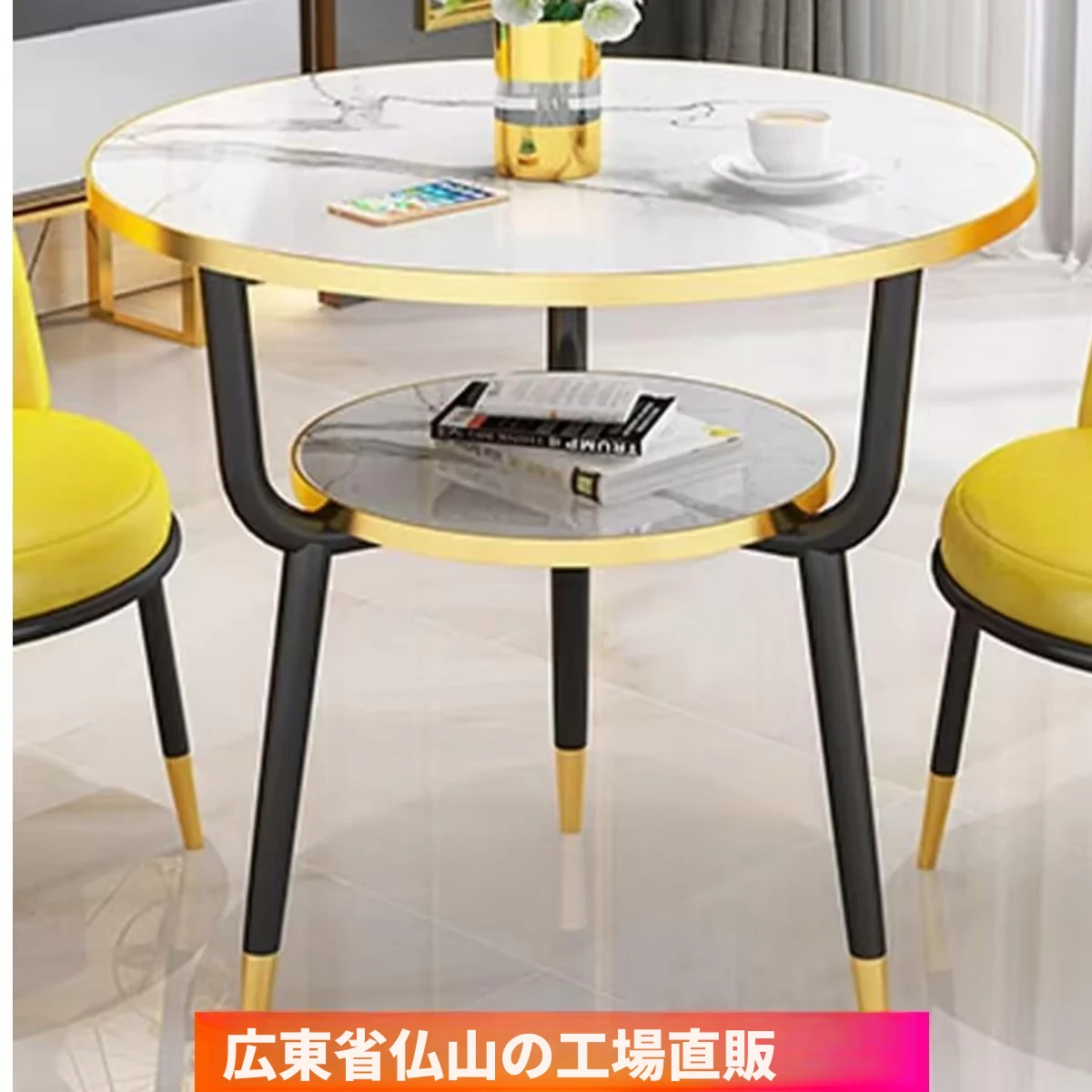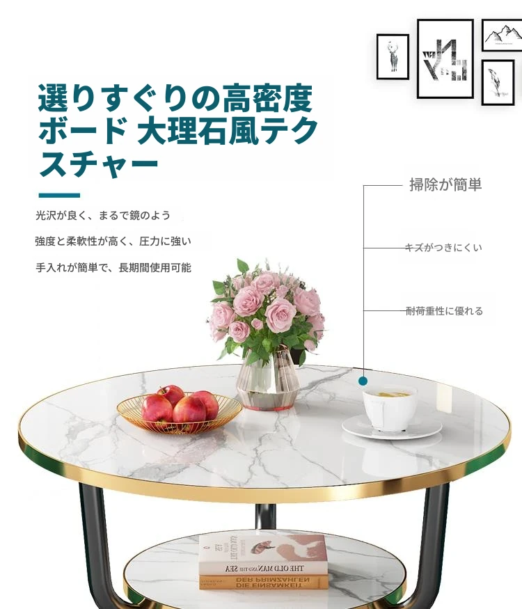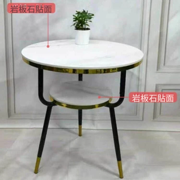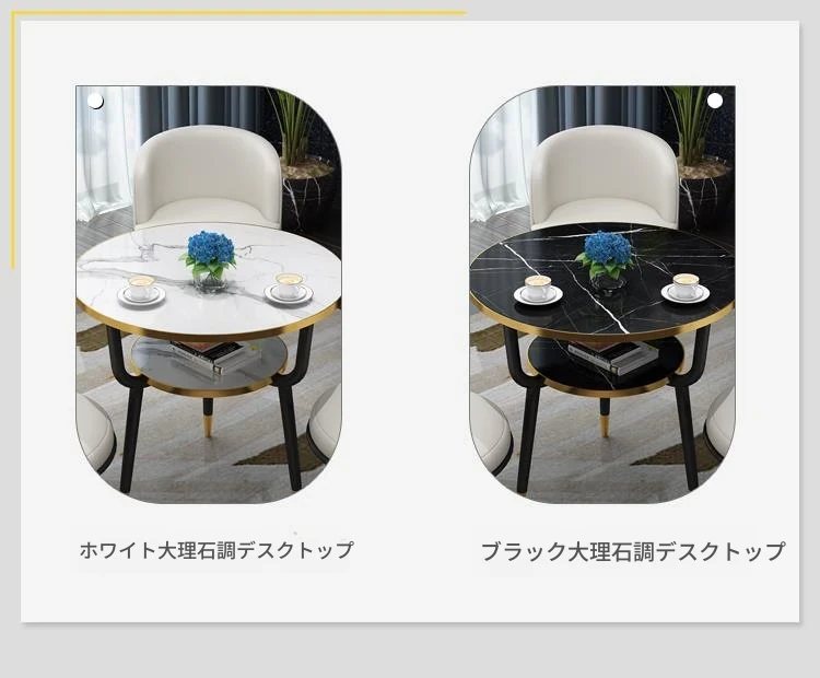 現代的な軽奢スタイルの大理石製コーヒーテーブル - リビングやバルコニー、ホテルの客室、美容院に最適!シンプルでありながら洗練されたデザイン、二段構造で実用性も抜群!あなたの空間をおしゃれに演出します。