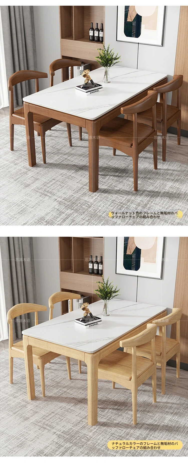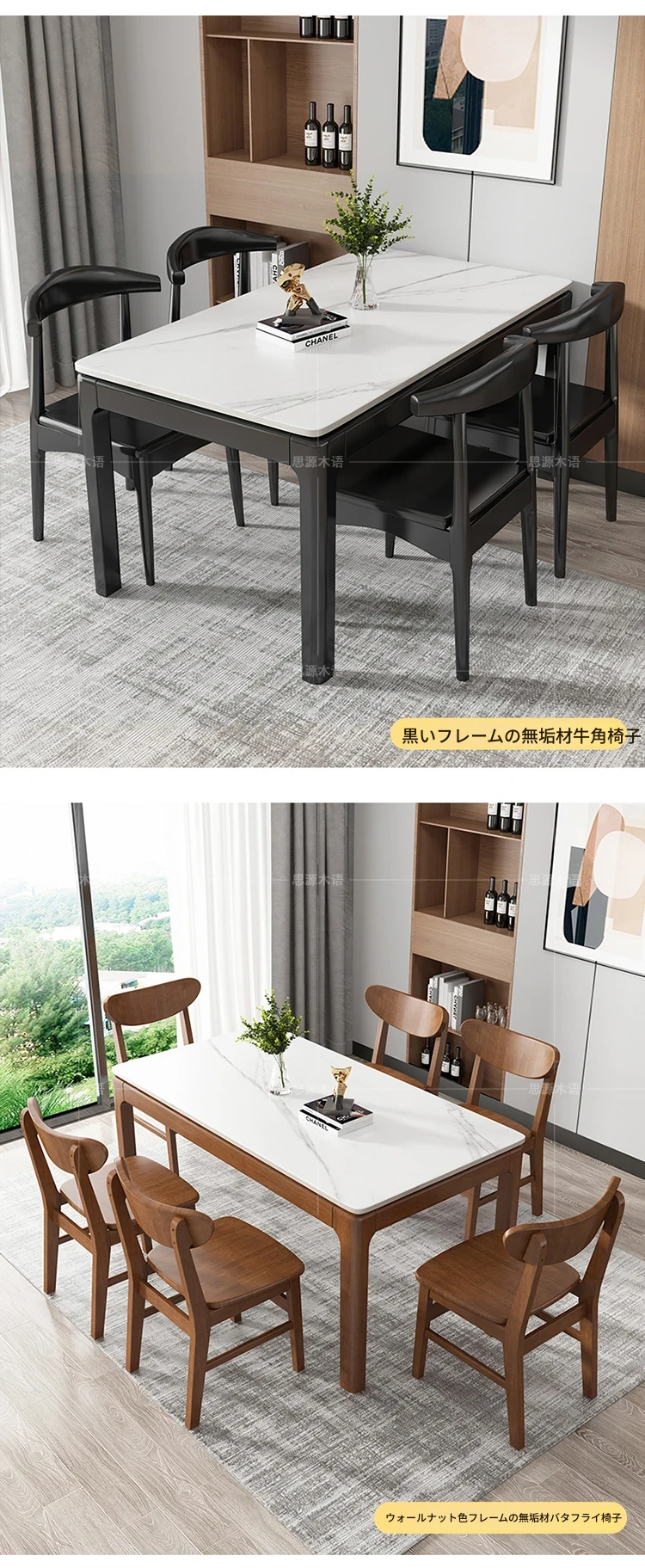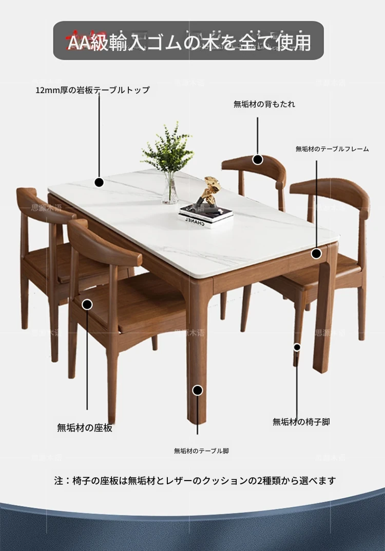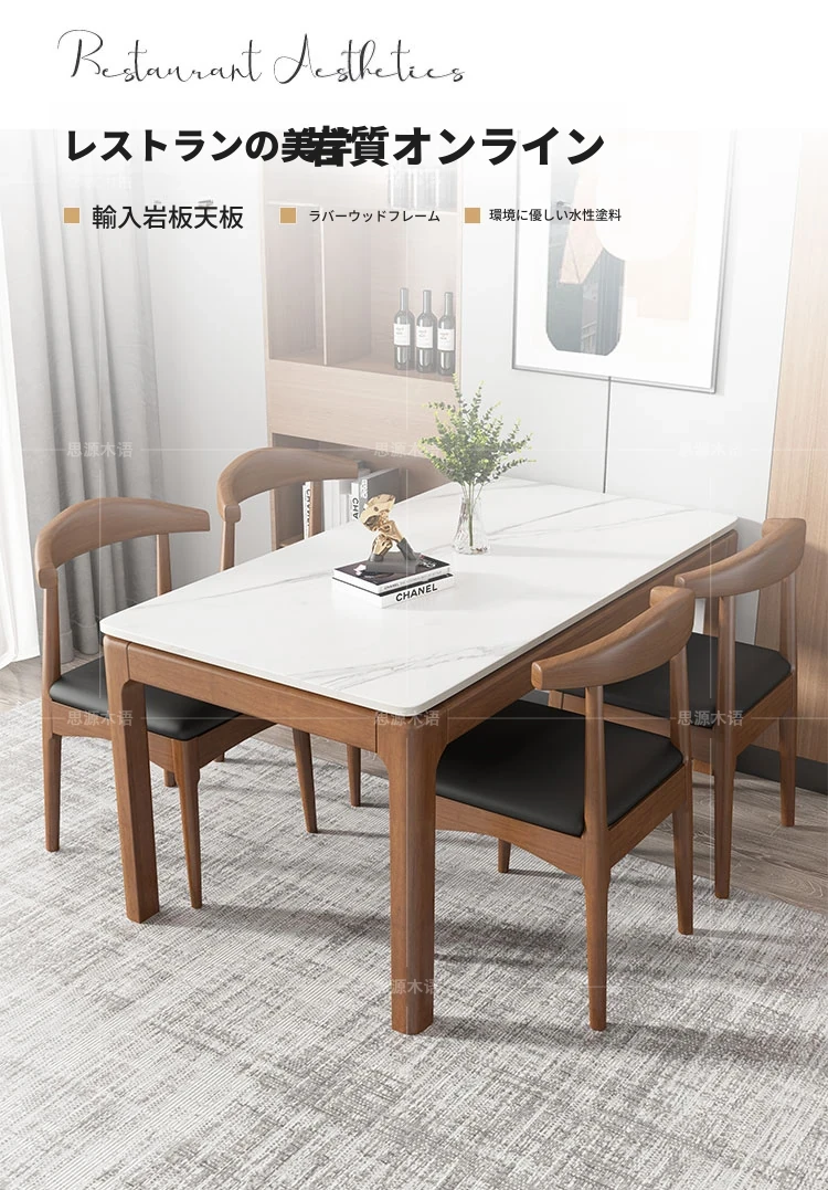 モダンミニマリストの岩板ダイニングテーブル - 家庭用小型デザイン、天然木製椅子付き、北欧スタイルの大理石長方形テーブルで、食事の時間を特別に演出!