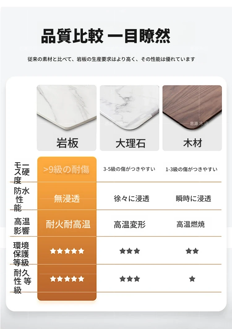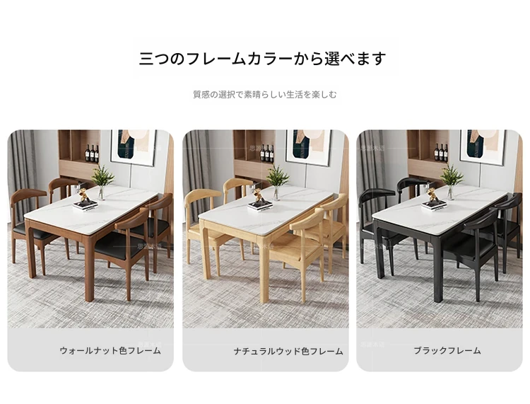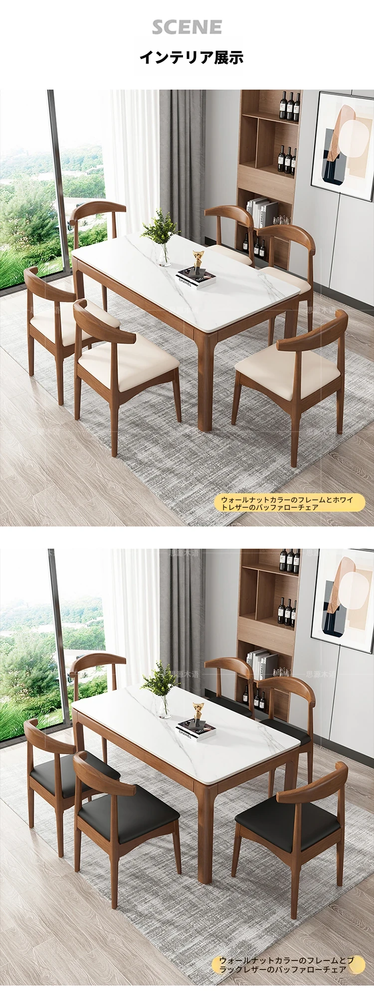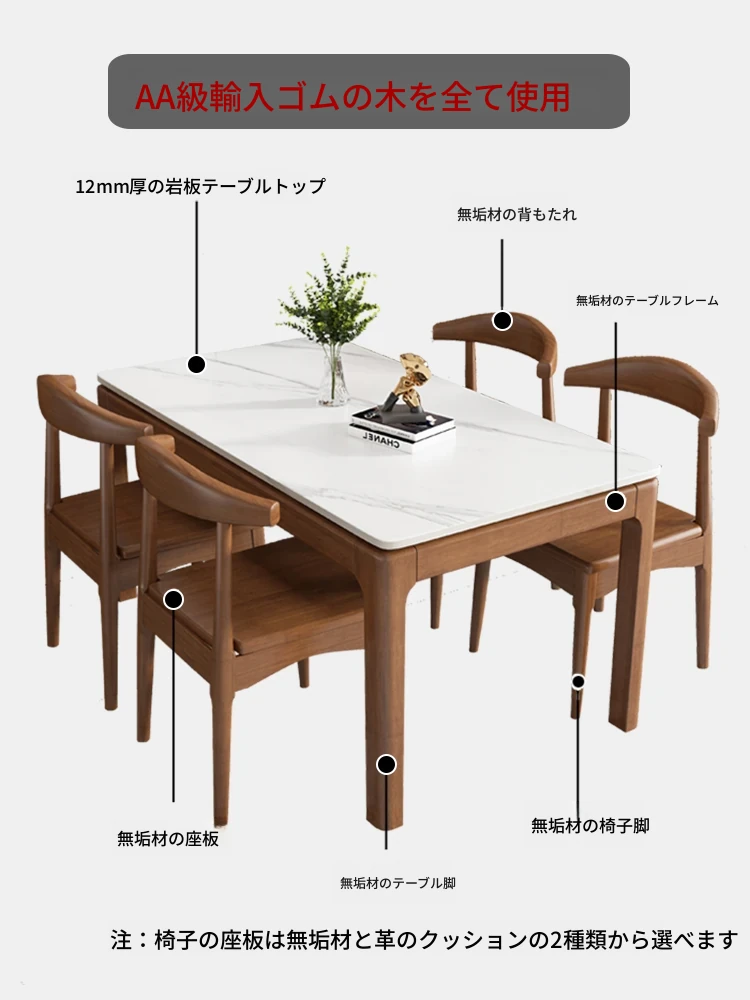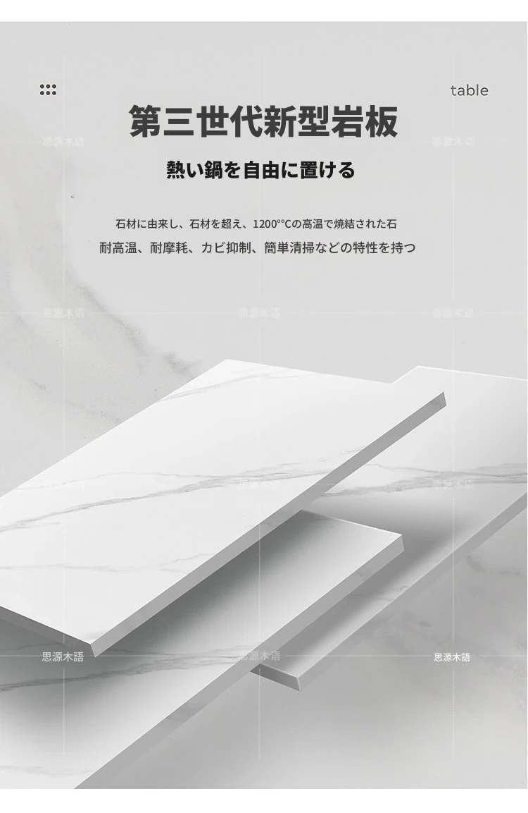 モダンミニマリストの岩板ダイニングテーブル - 家庭用小型デザイン、天然木製椅子付き、北欧スタイルの大理石長方形テーブルで、食事の時間を特別に演出!