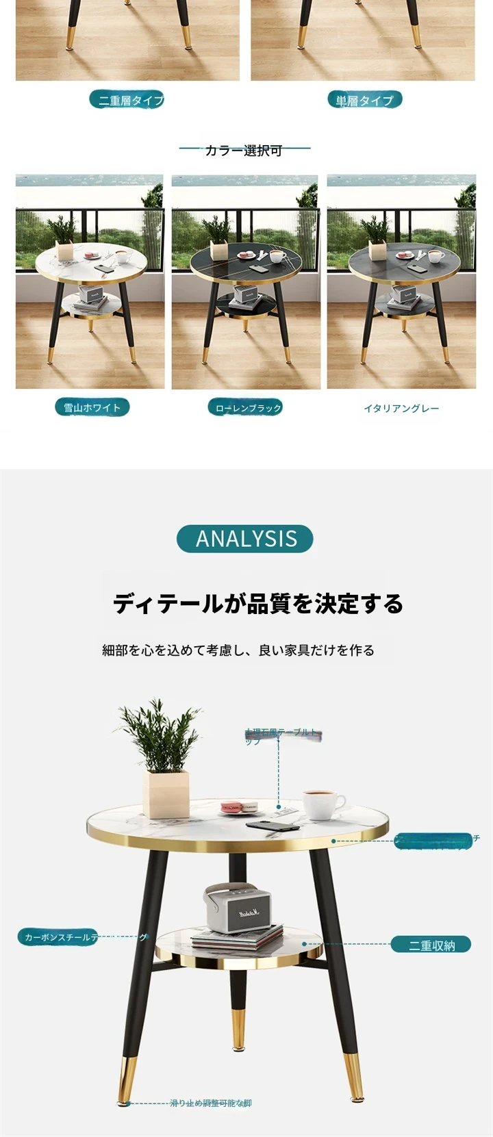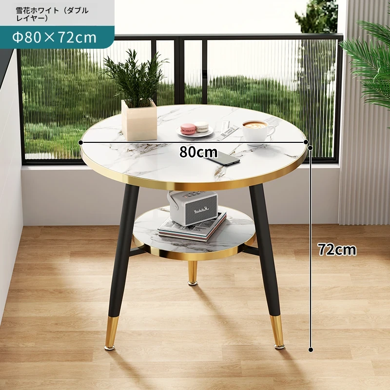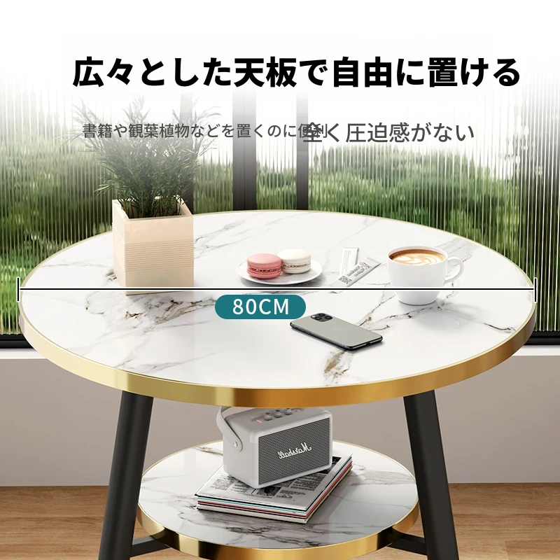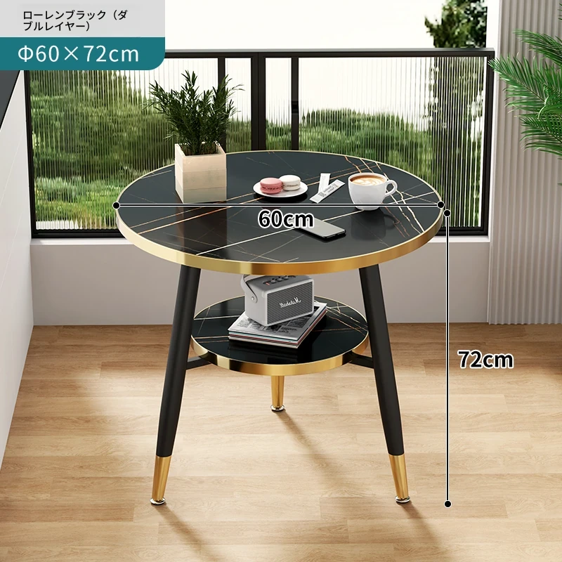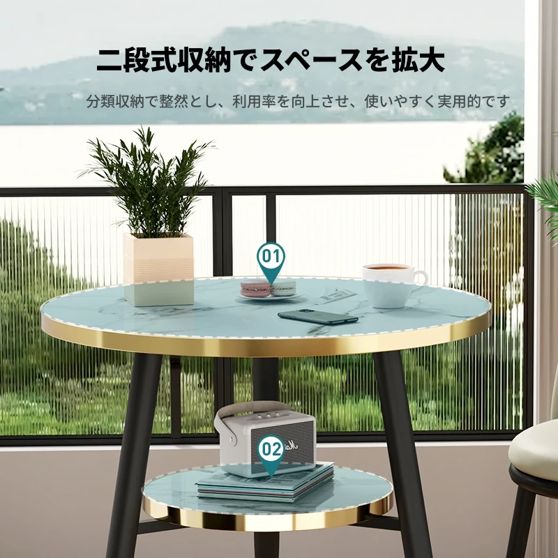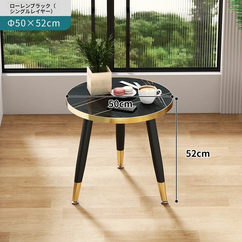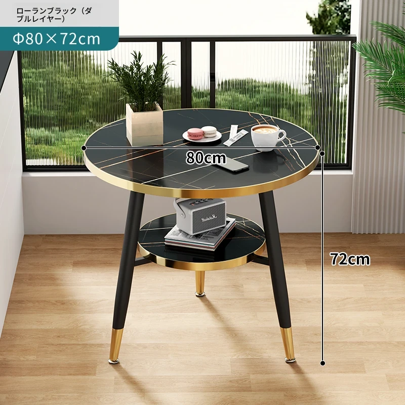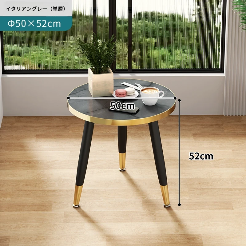 モダンな軽奢スタイルのバルコニー用小型丸テーブル|リビングのソファサイドテーブルやカフェ、ティーサロンに最適!オシャレで使いやすい、リラックス空間を演出します。