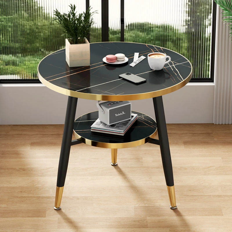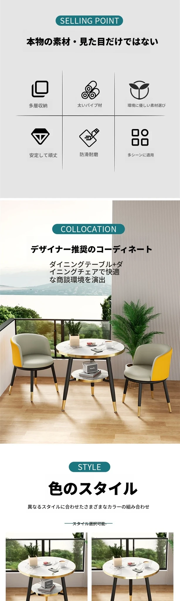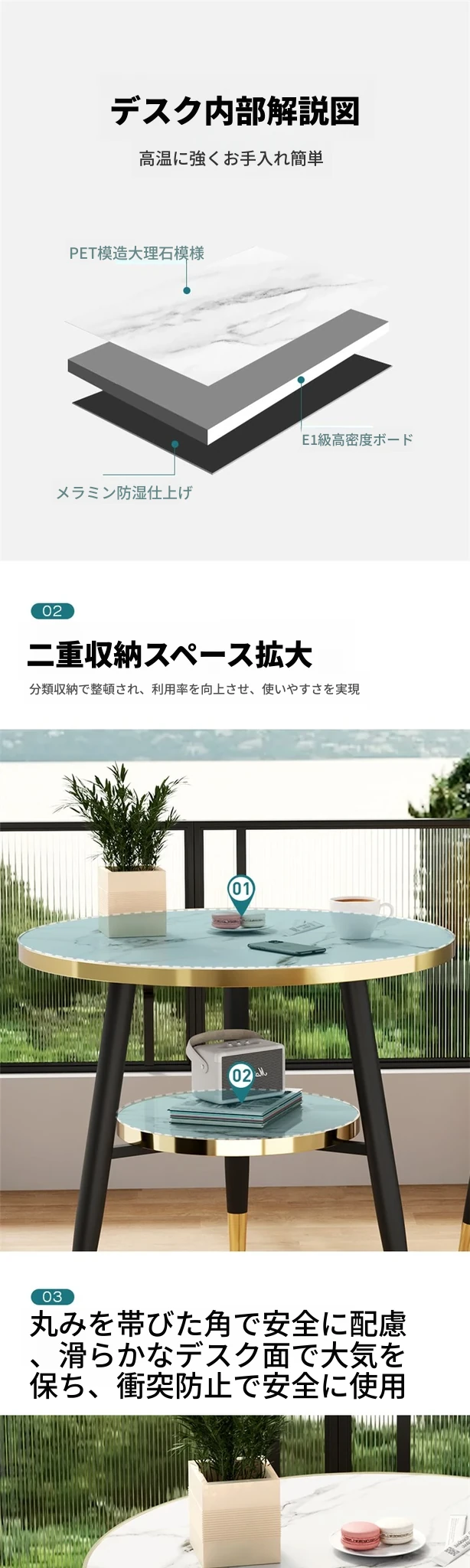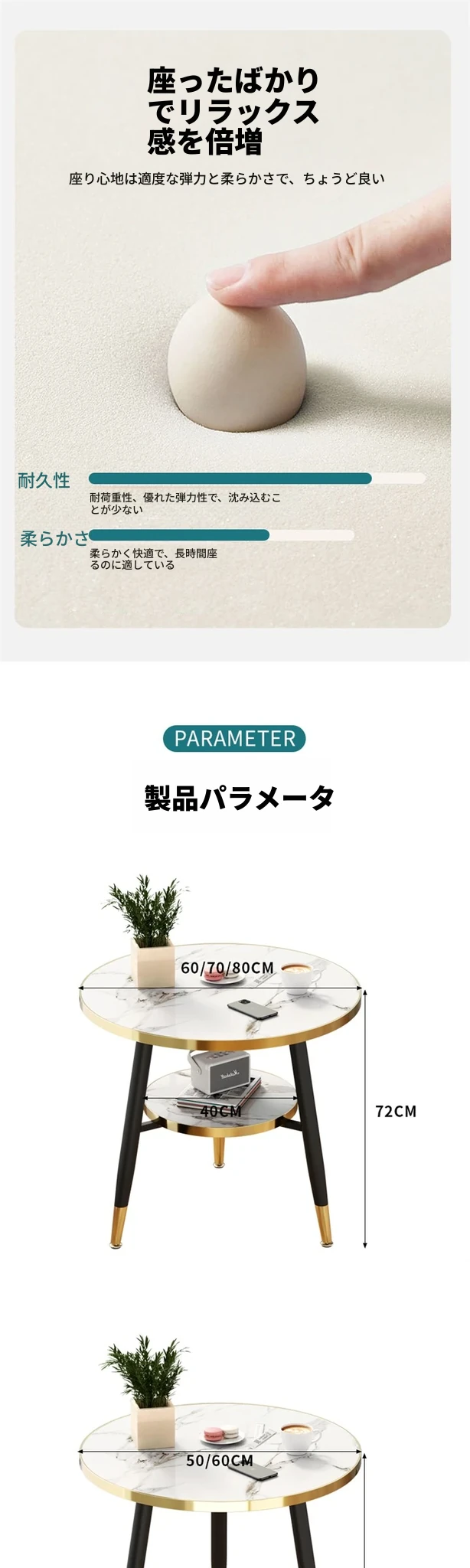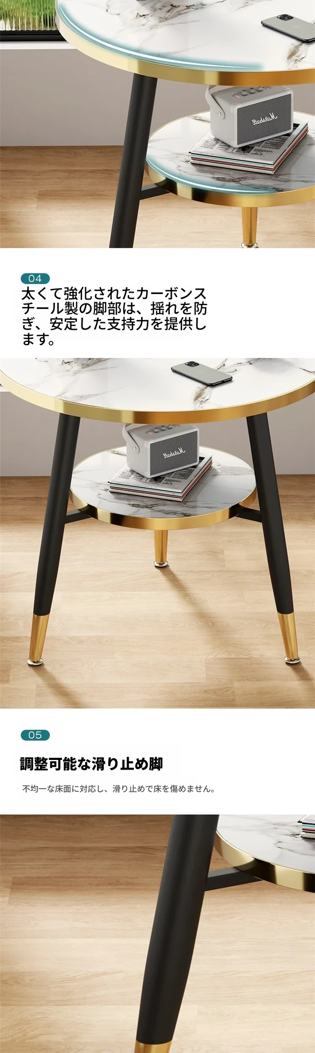 モダンな軽奢スタイルのバルコニー用小型丸テーブル|リビングのソファサイドテーブルやカフェ、ティーサロンに最適!オシャレで使いやすい、リラックス空間を演出します。