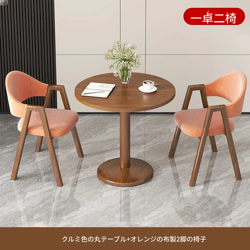 オレンジ2布椅+60ウォールナット色丸テーブル