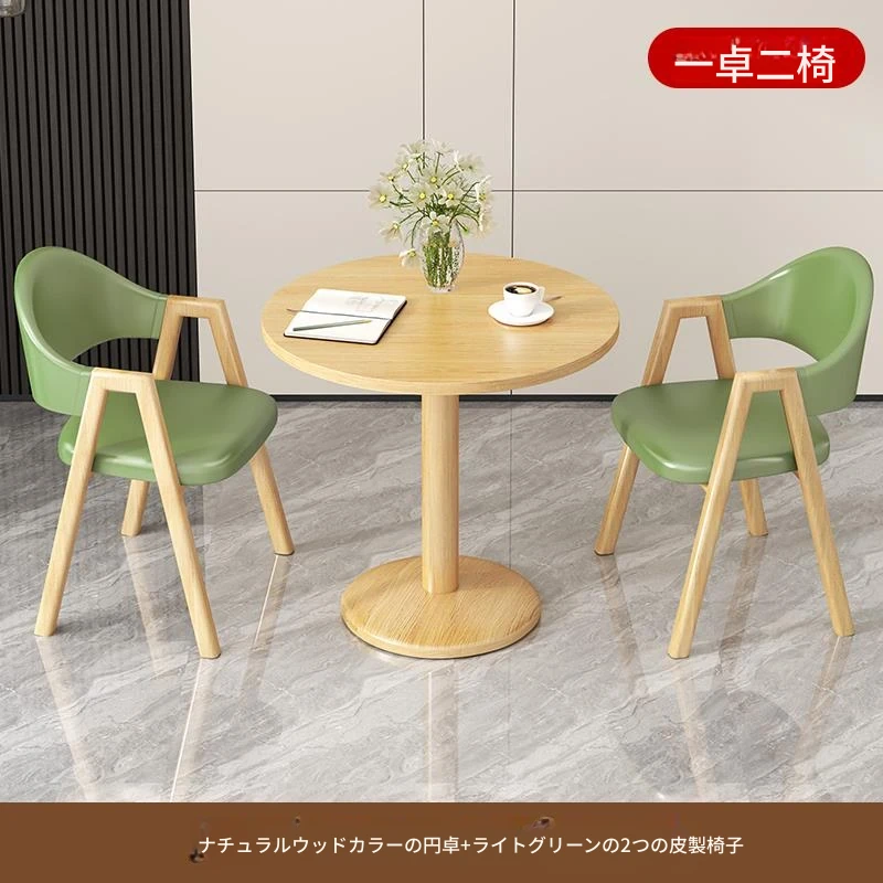 カーキ色2皮椅+60ナチュラルウッド色丸テーブル