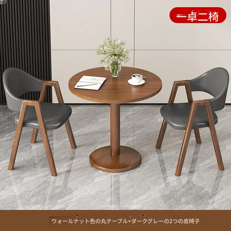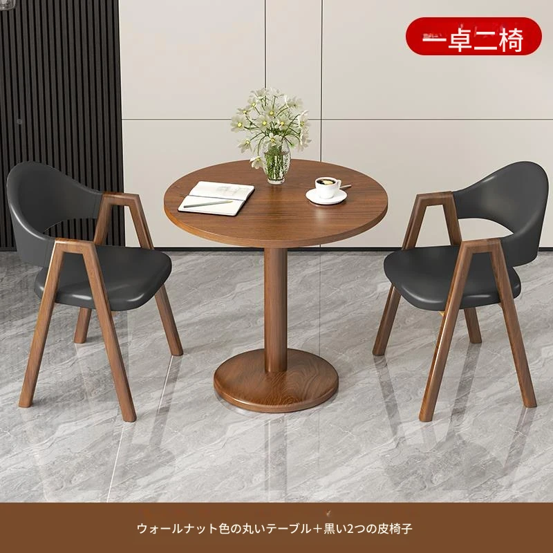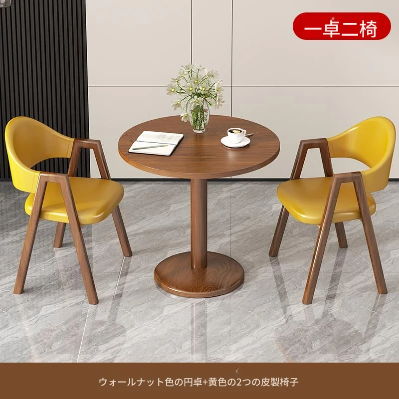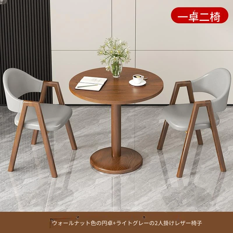 ブラウン色2皮椅+60ウォールナット色丸テーブル