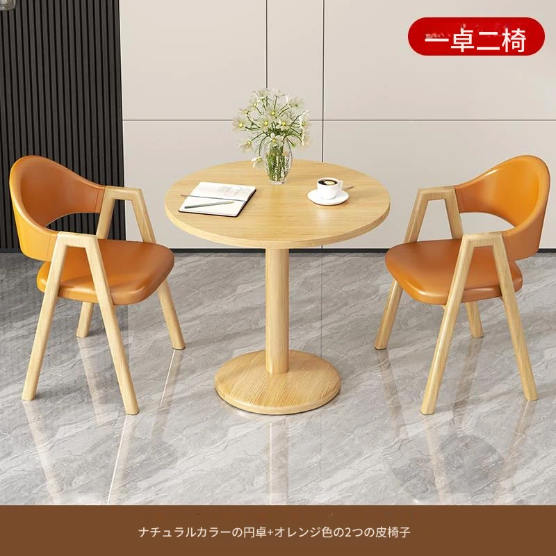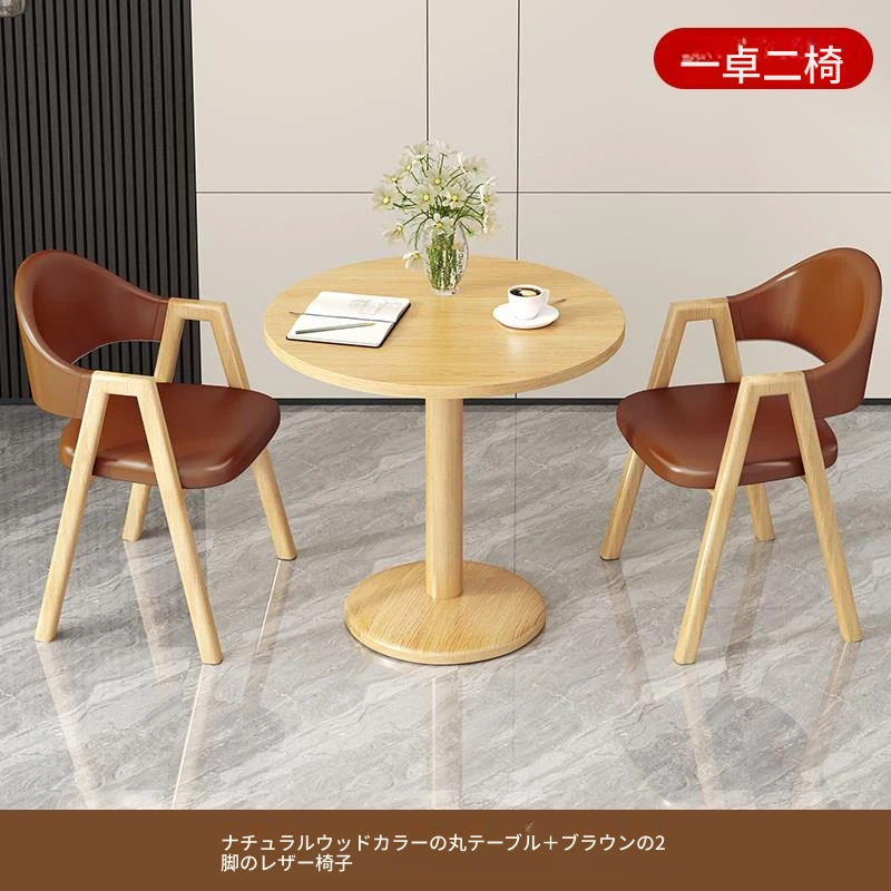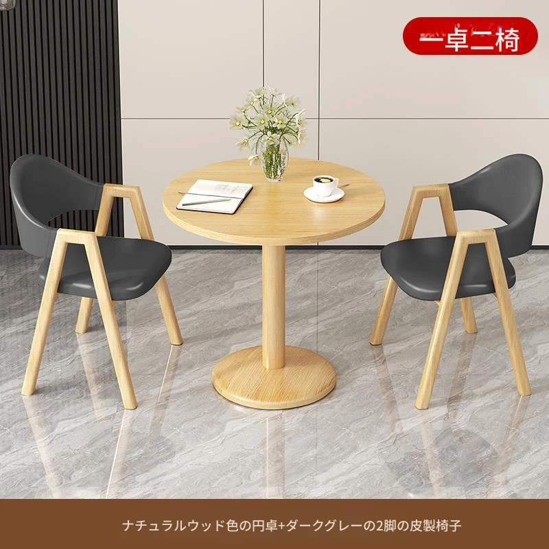 ブラウン色2皮椅+60ナチュラルウッド色丸テーブル