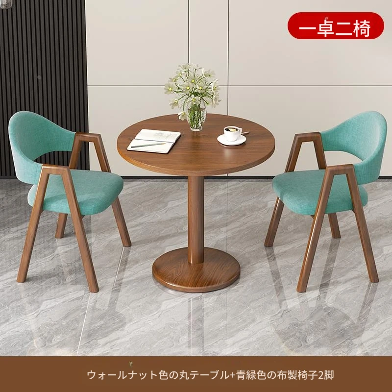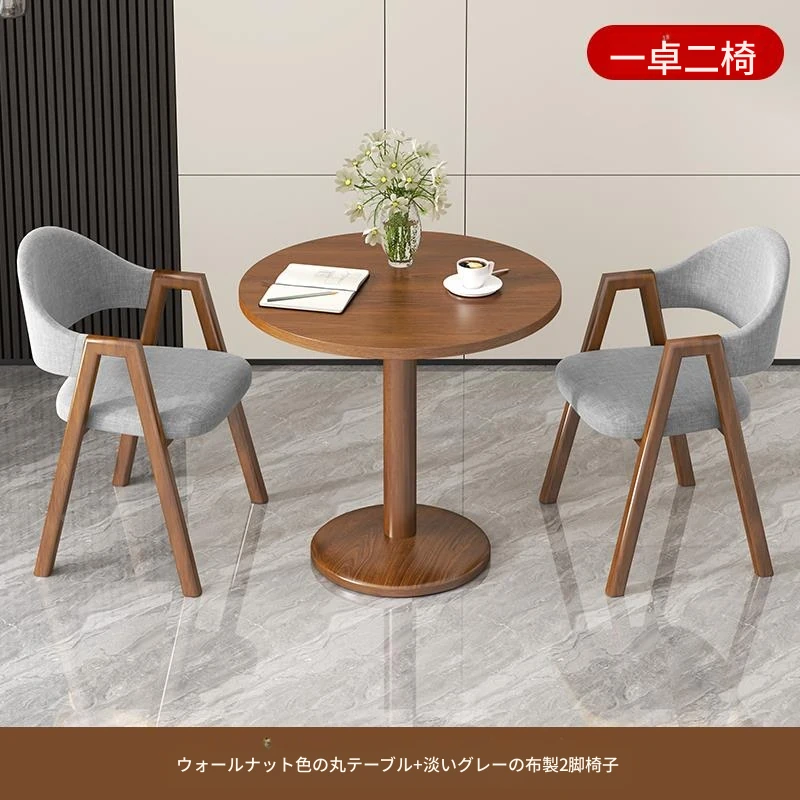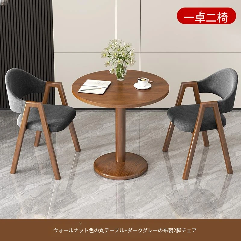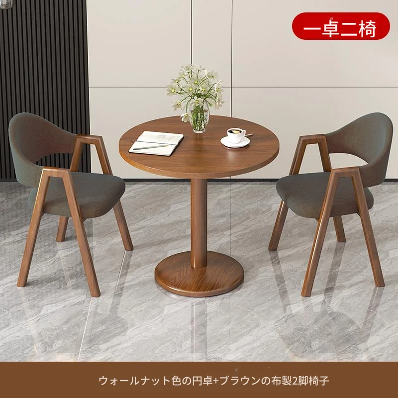 ブラウン色2布椅+60ウォールナット色丸テーブル