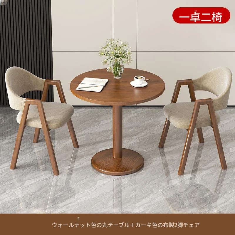 カーキ色2布椅+60ウォールナット色丸テーブル