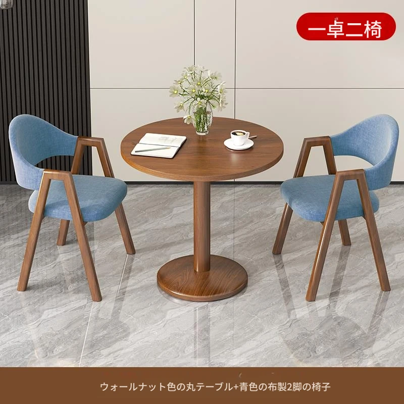 デニムブルー2布椅+60ウォールナット色丸テーブル