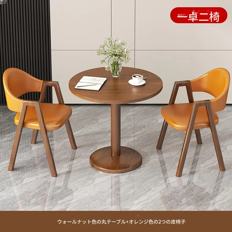 オレンジ2皮椅+60ウォールナット色丸テーブル