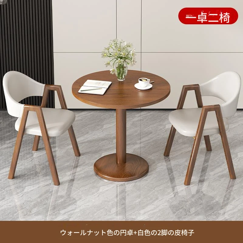 アイボリー色2皮椅+60ウォールナット色丸テーブル