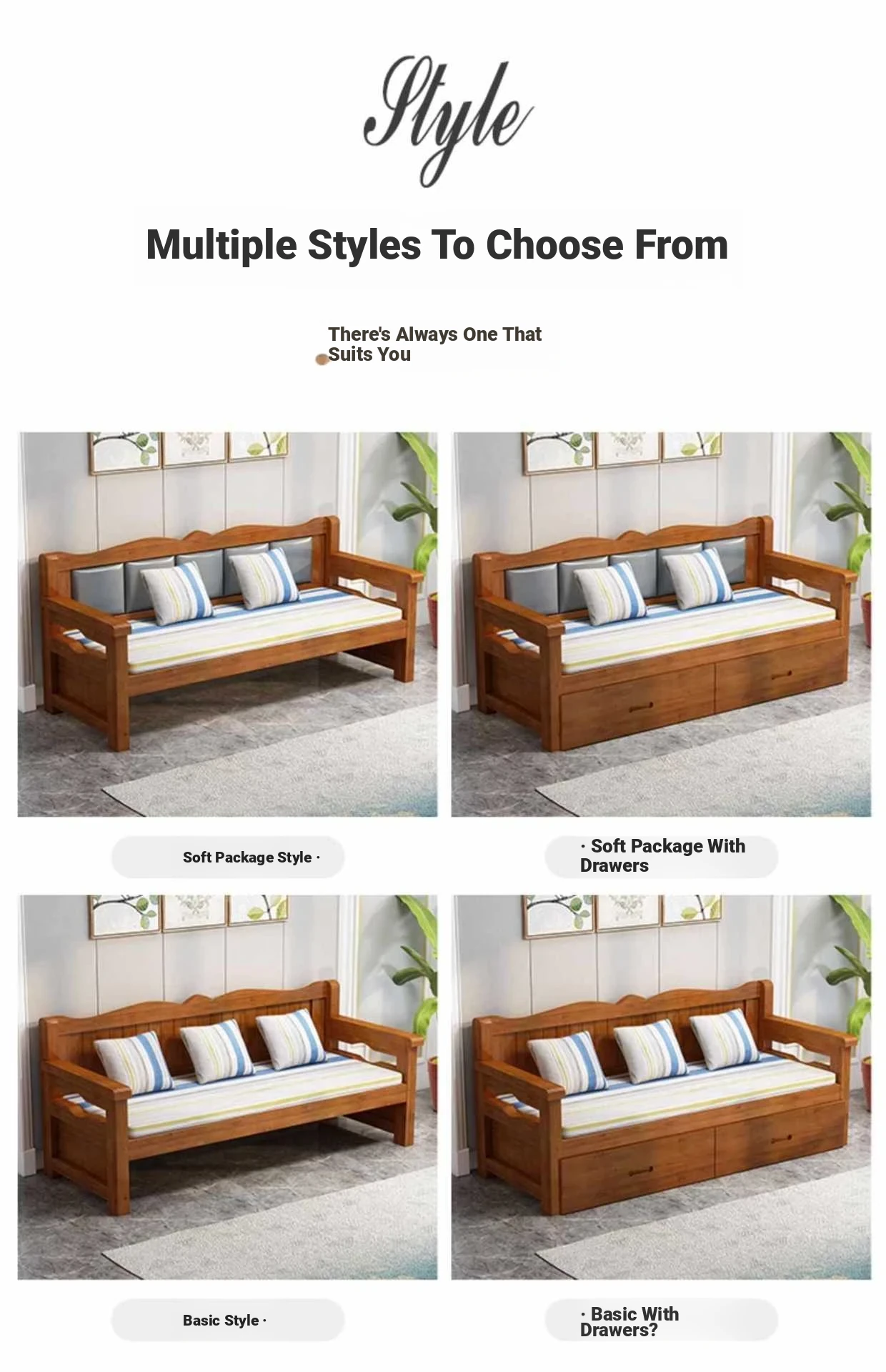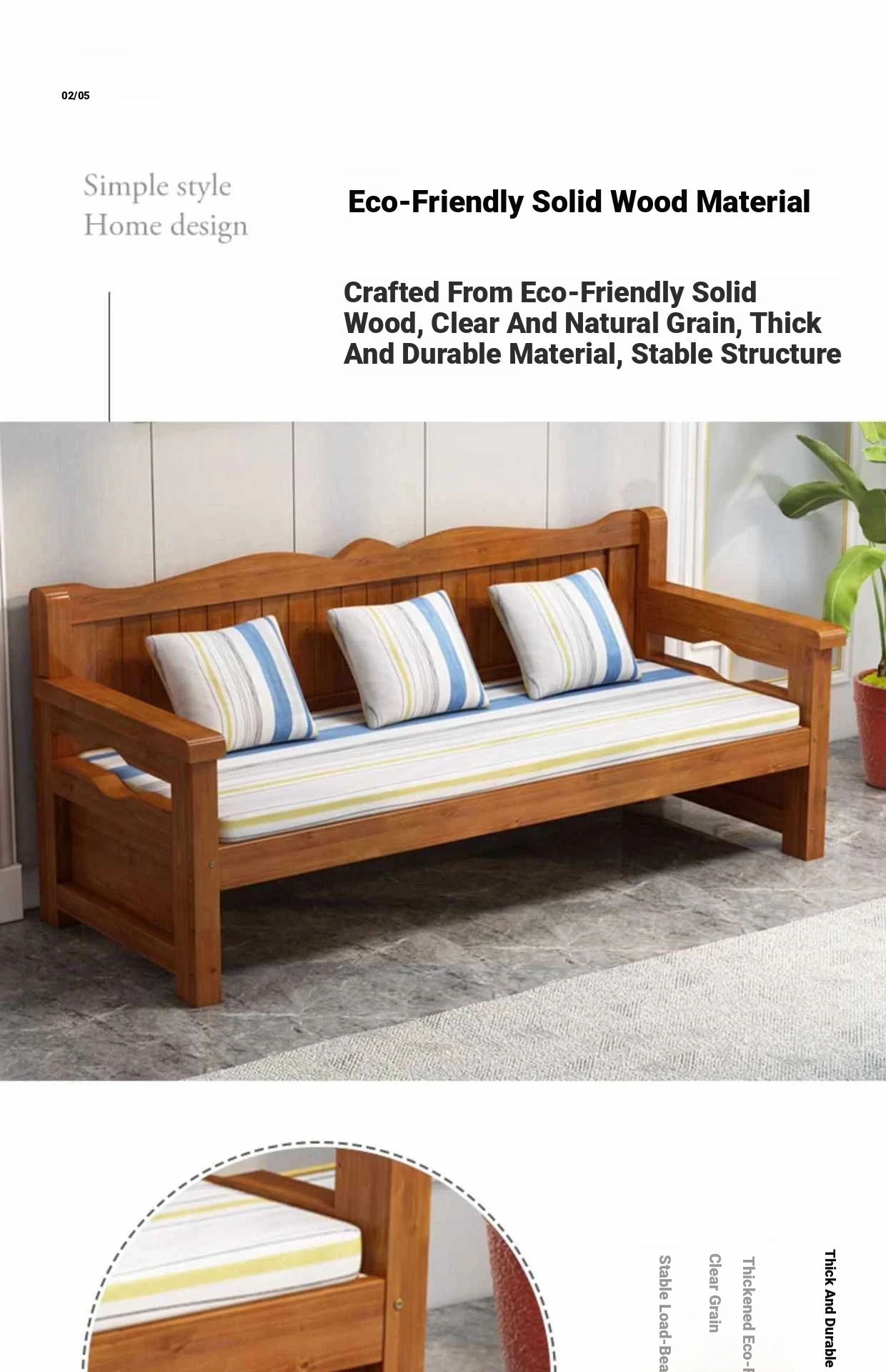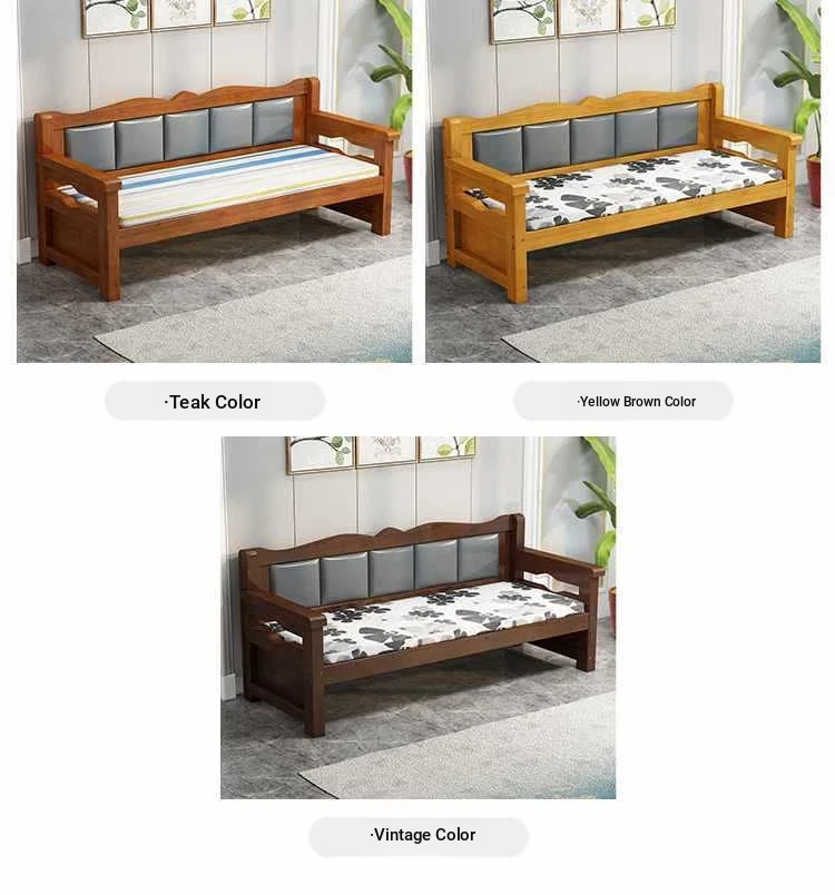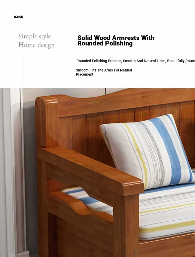 C three-draw solid wood backrest teak color [send cushion + pillow]]