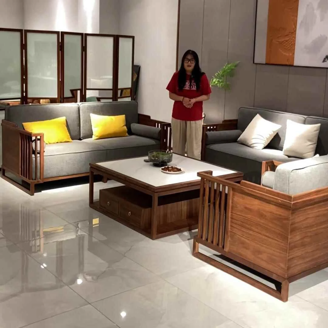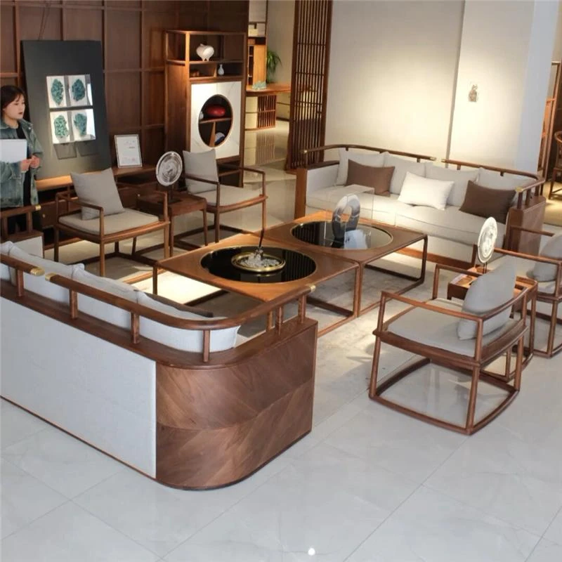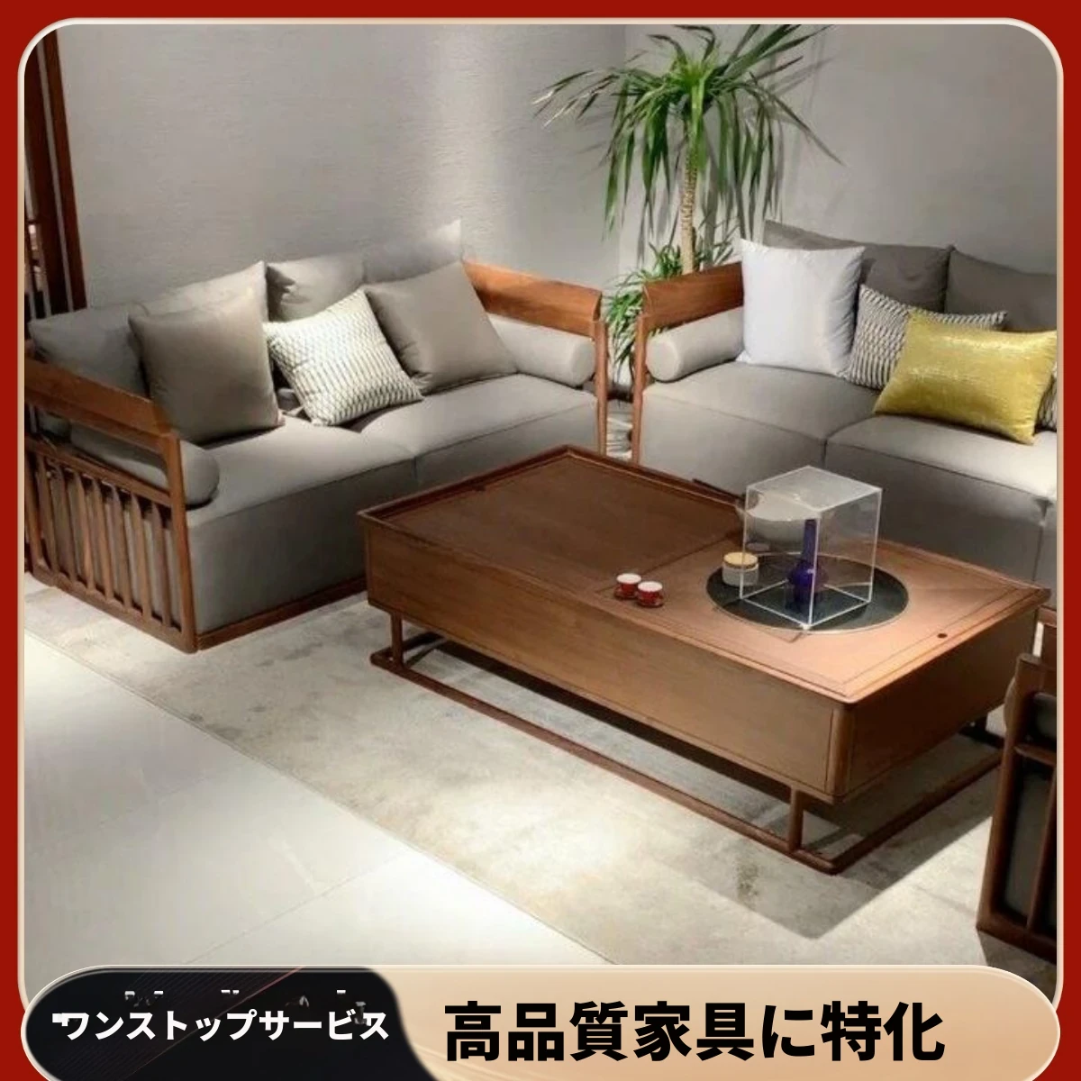北米産ブラックウォールナットの新中式デザイン、実木ソファセット。禅の雰囲気漂うモダンでシンプルな軽奢スタイル、ホテルやヴィラに最適な高品質リビング空間を演出します!