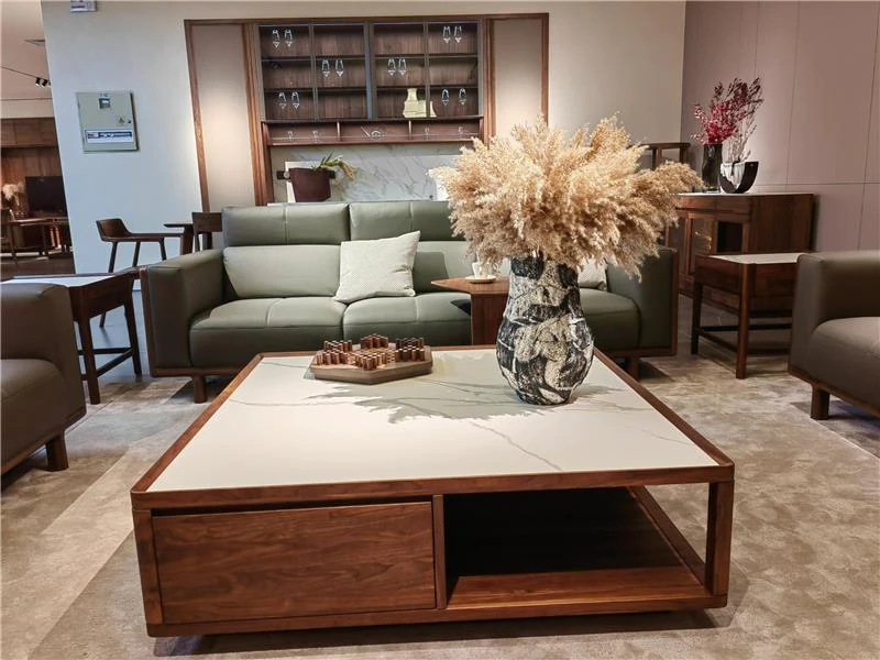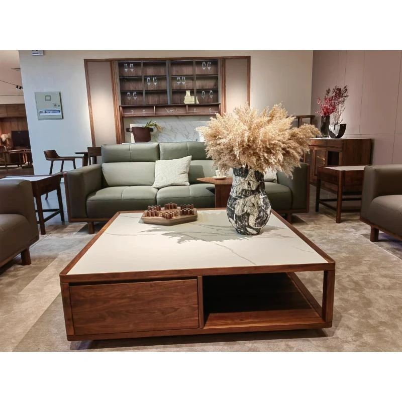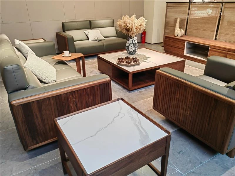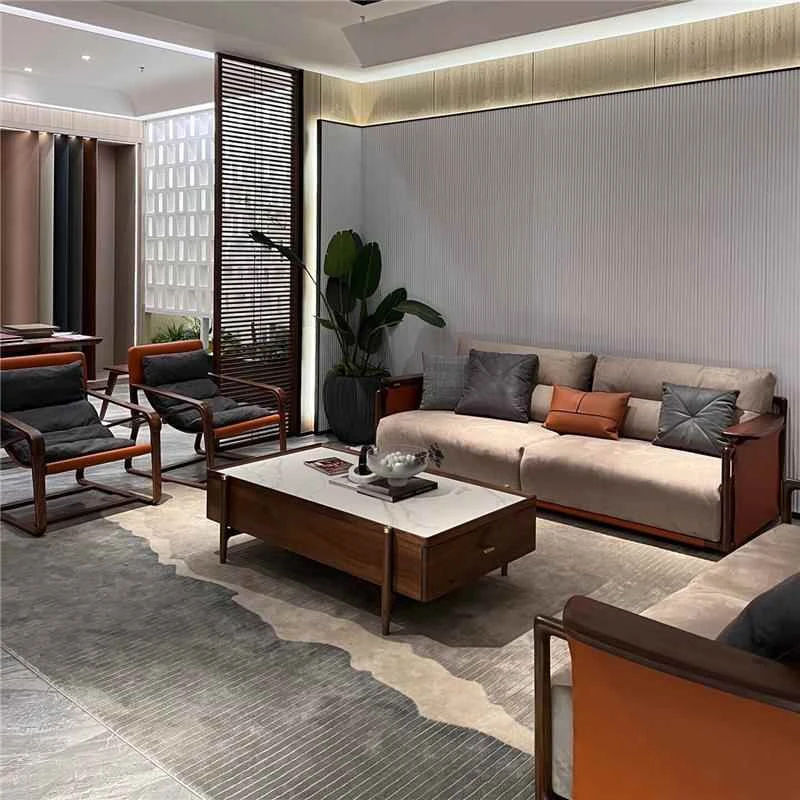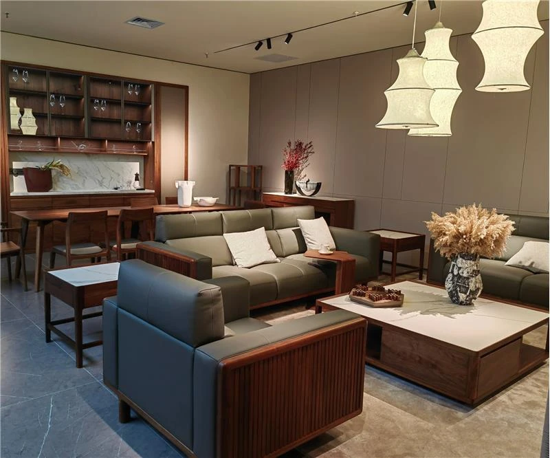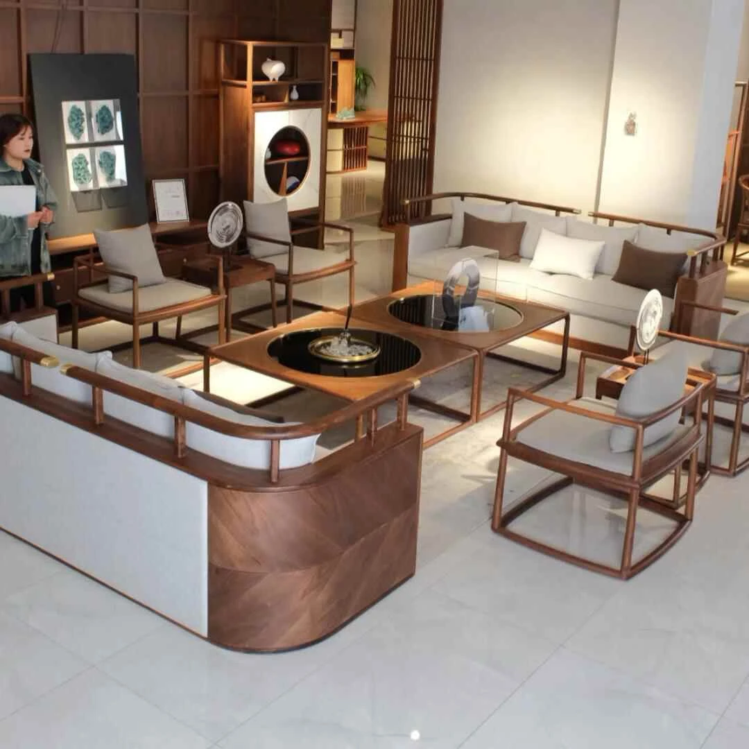 北米産ブラックウォールナットの新中式デザイン、実木ソファセット。禅の雰囲気漂うモダンでシンプルな軽奢スタイル、ホテルやヴィラに最適な高品質リビング空間を演出します!