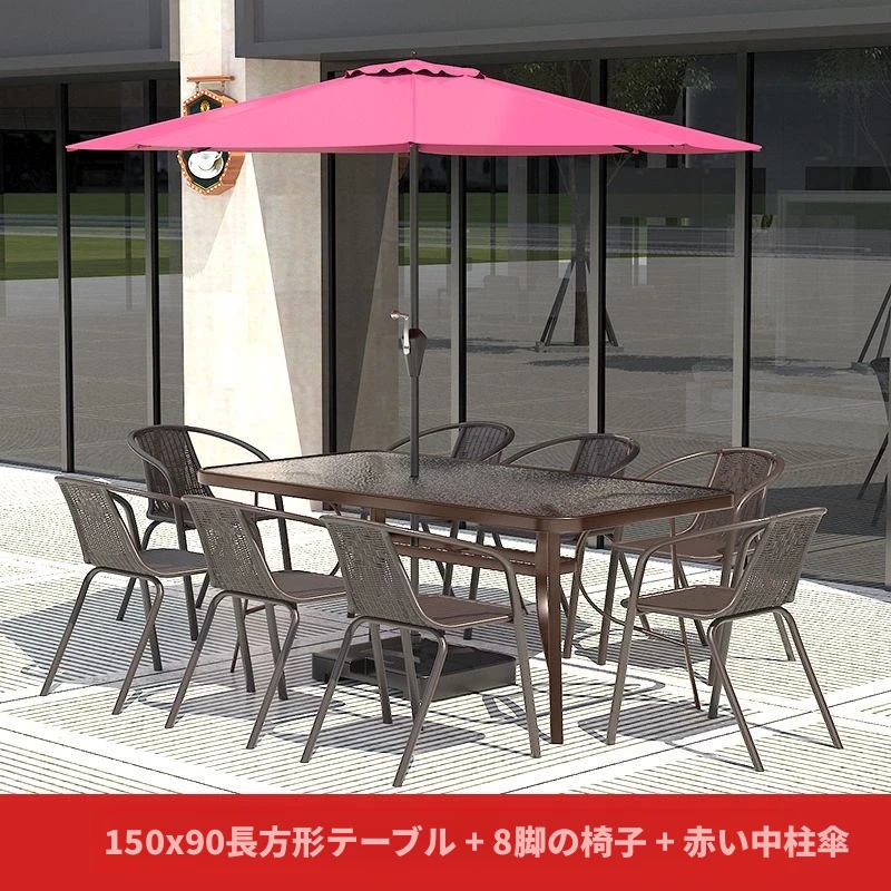 150x90長方テーブル+8椅子+ダブルトップ中柱傘