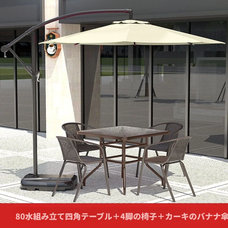 80水紋組み立て四角テーブル+4椅子+カーキバナナ傘