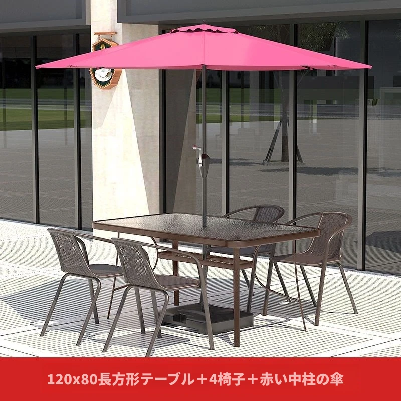 120x80長方テーブル+4椅子+ダブルトップ中柱傘