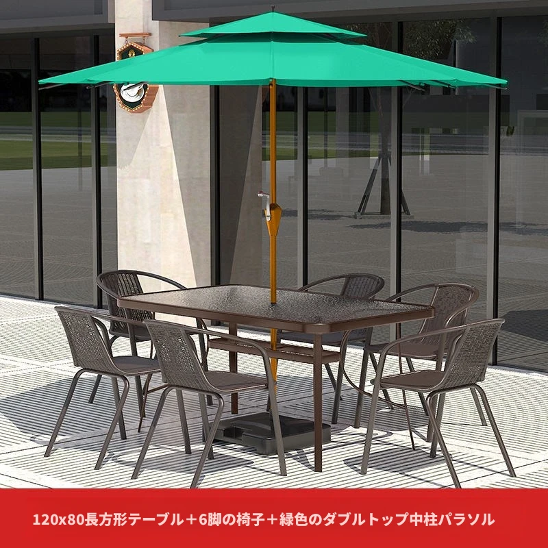 120x80長方テーブル+6椅子+ダブルトップ中柱傘