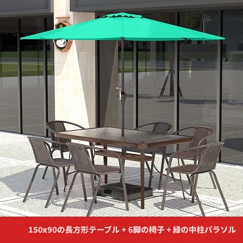 150x90長方テーブル+6椅子+ダブルトップ中柱傘