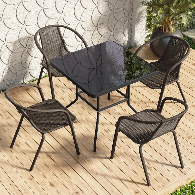 80cm黒強化ガラス組み立て四角テーブル+4椅子