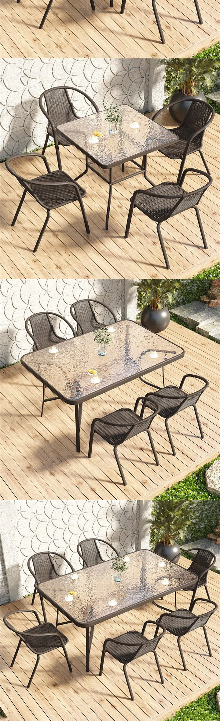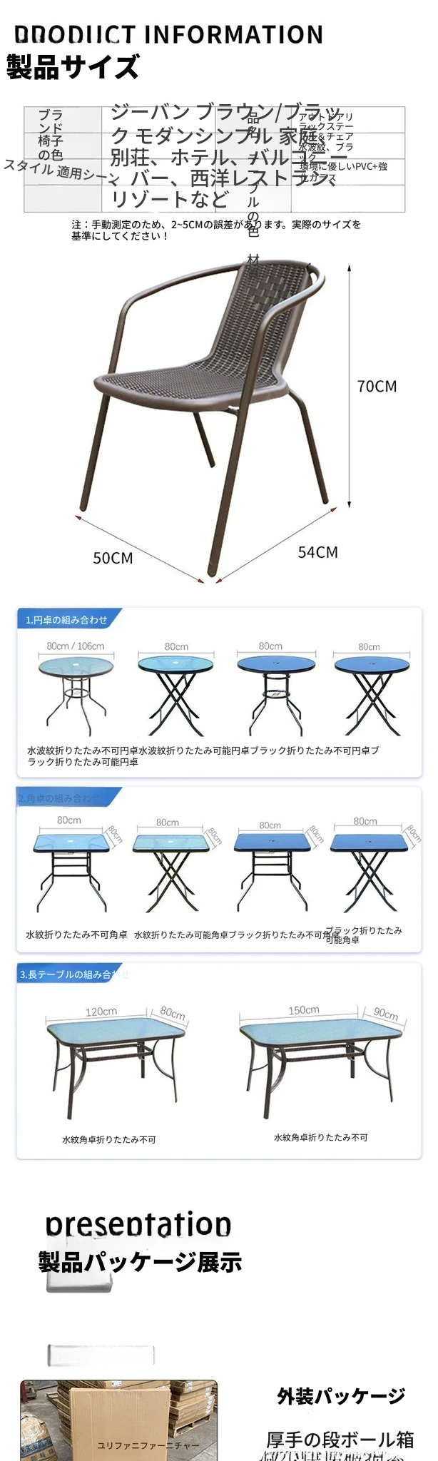 120cm水紋強化ガラス組み立て長テーブル+6椅子
