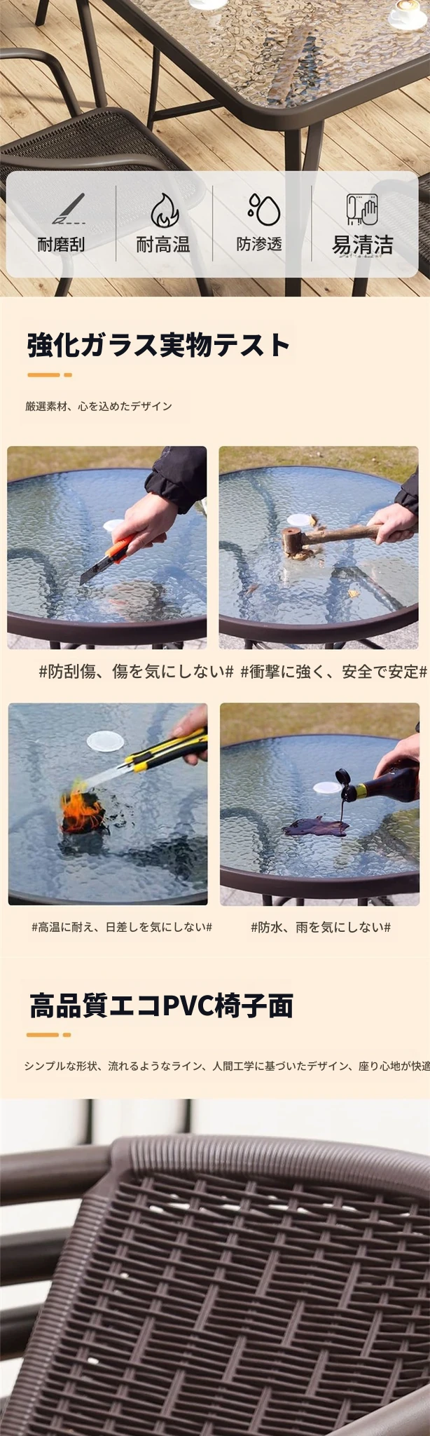 80cm水紋強化ガラス組み立て円テーブル+2椅子