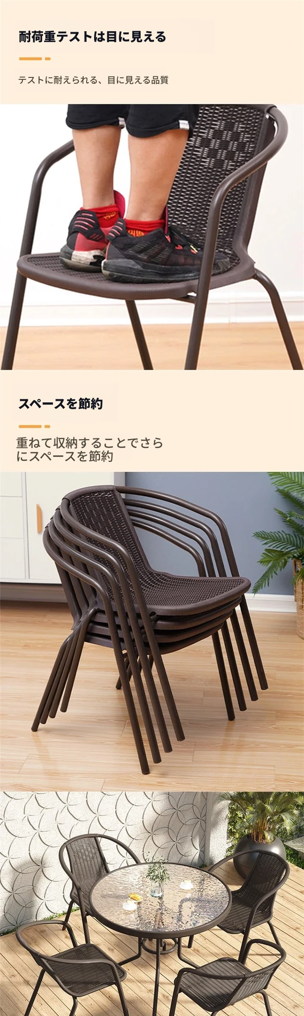 80黒組み立て四角テーブル+4椅子+カーキバナナ傘