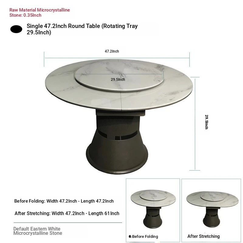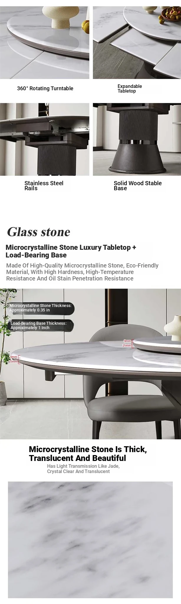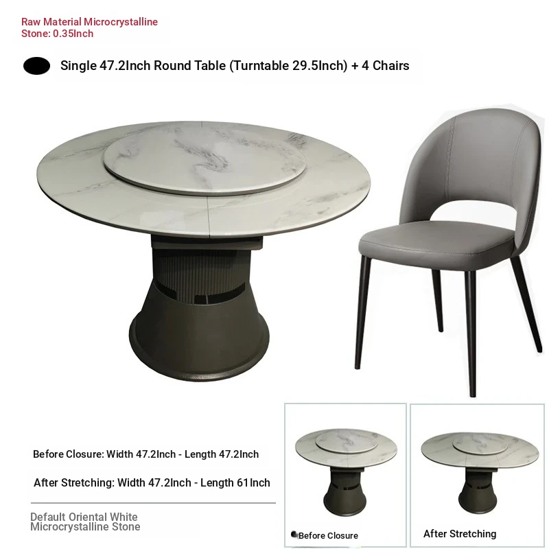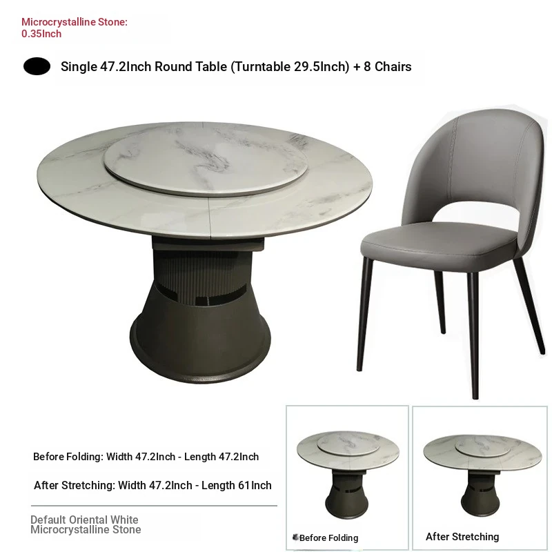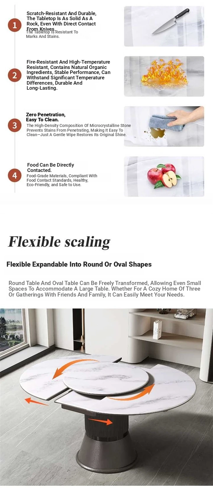 Modern Round to Oval Expandable Microcrystal Stone Dining Table - Versatile Minimalist Design for Home Use, Perfect for Family Meals and Gatherings.