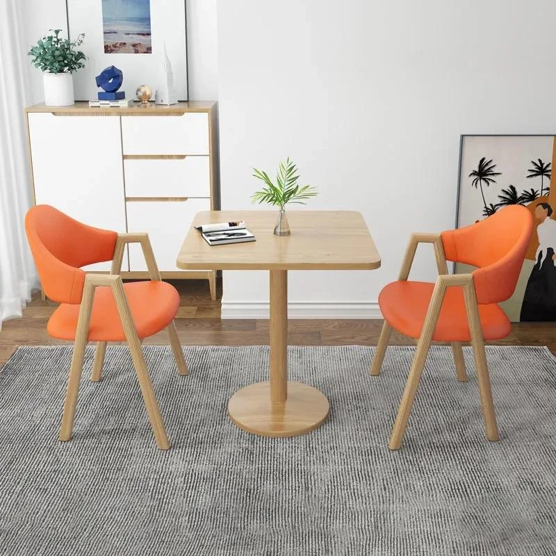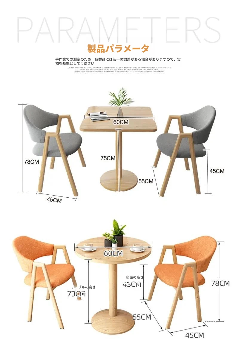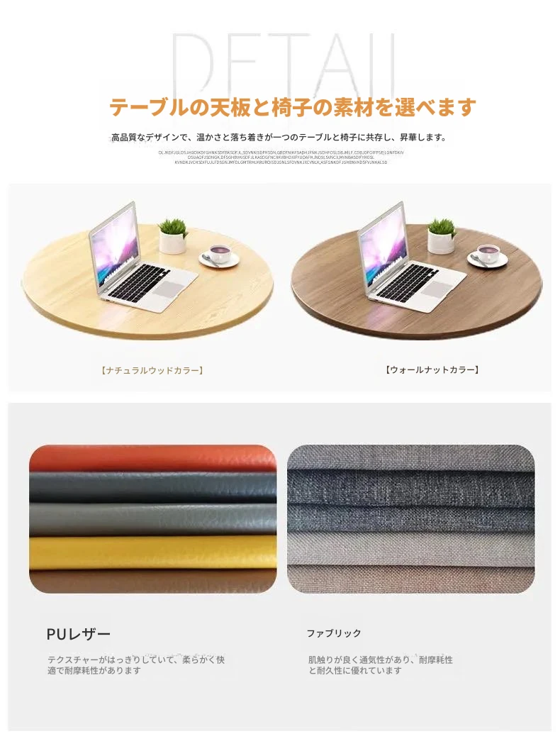 浅オレンジ色60cm角テーブル+2レザー椅子