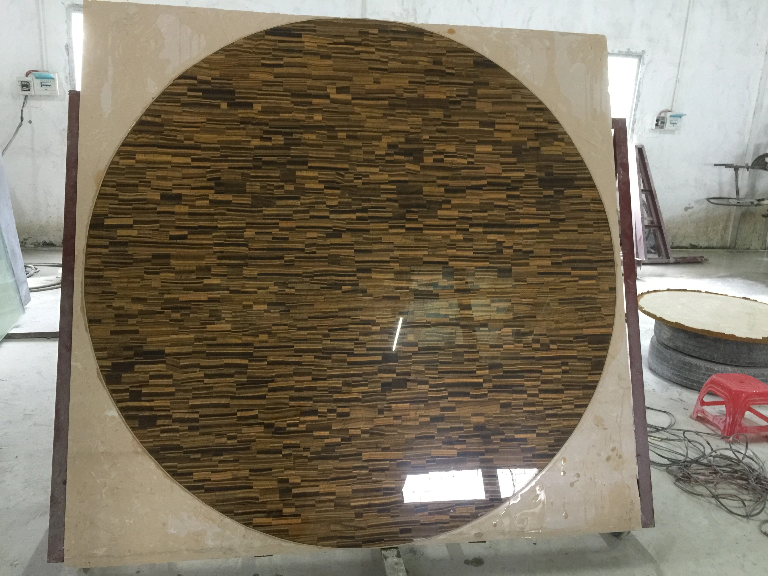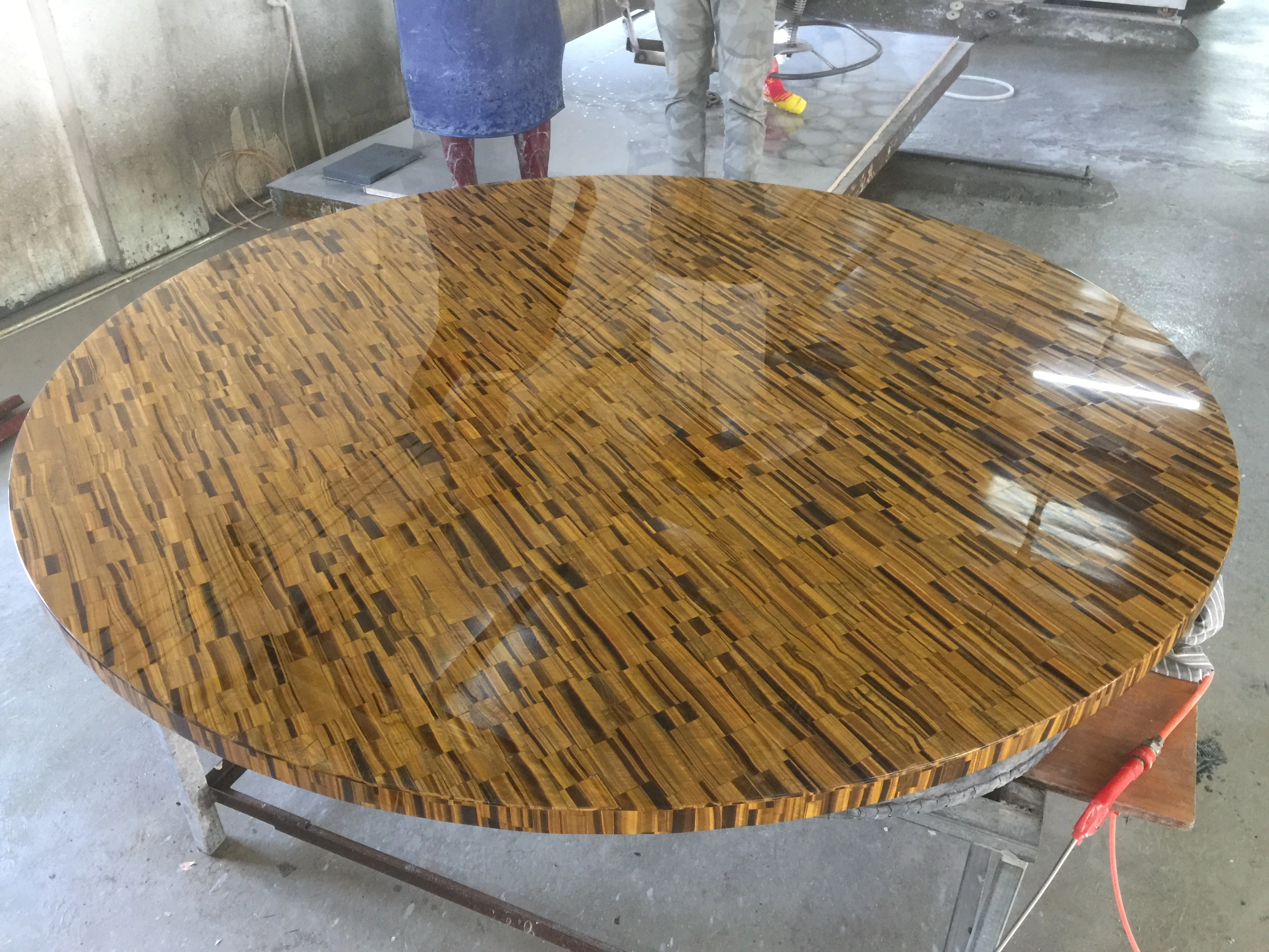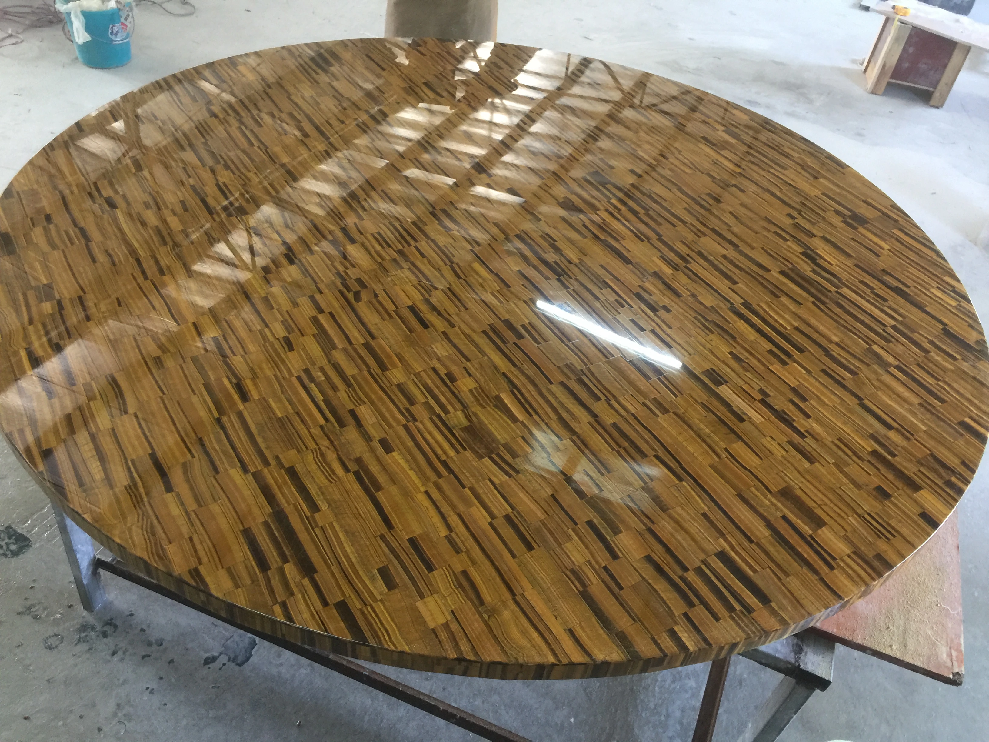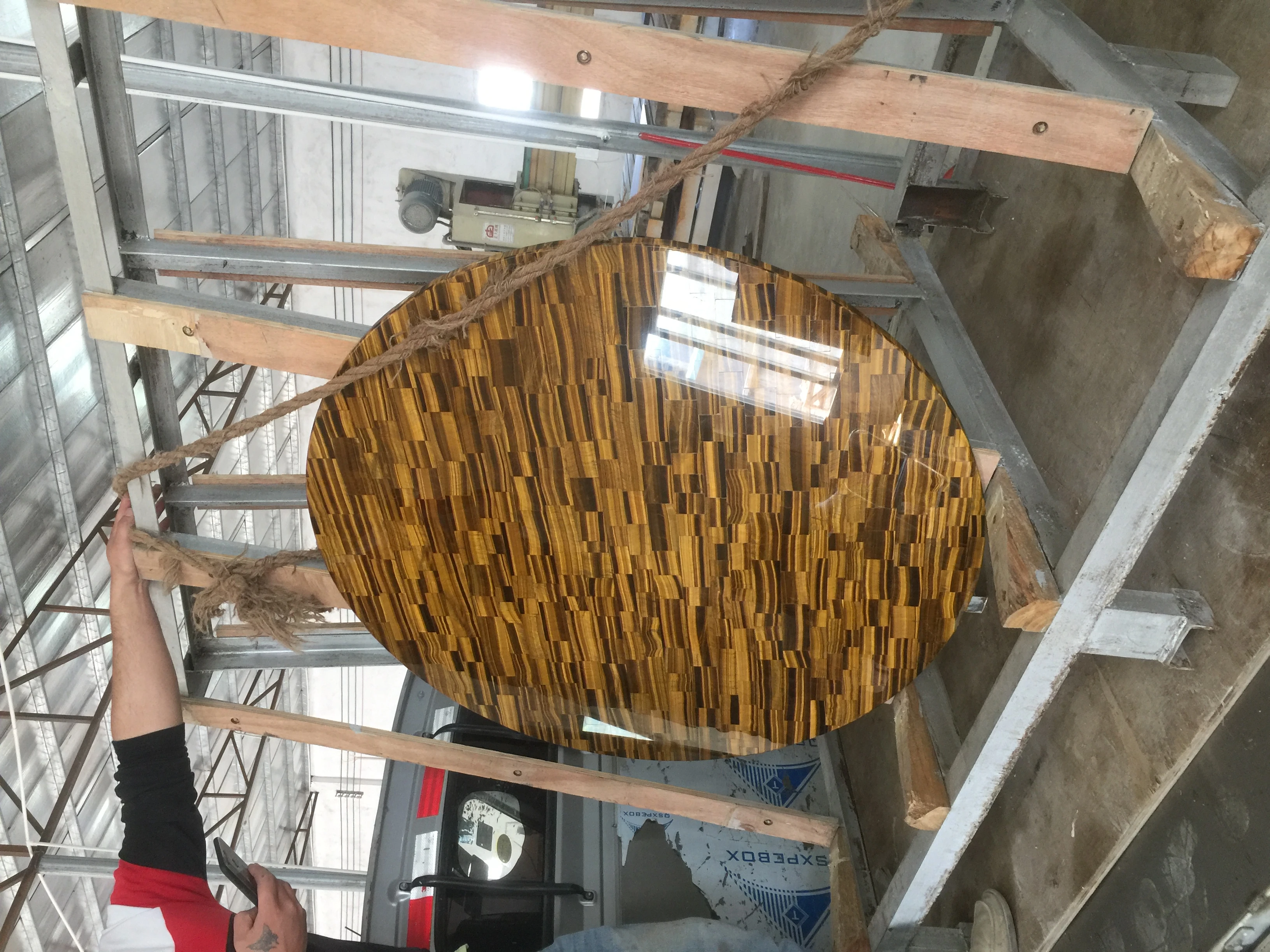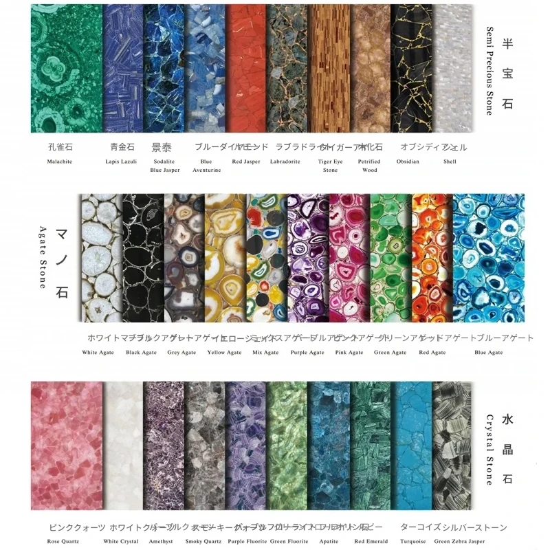 天然輸入のタイガーズアイ石を使用した高級ダイニングテーブル。豪華なヴィラや高級住宅にぴったりのイタリアン・ライトラグジュアリーな長方形テーブル。おしゃれで洗練された空間を演出します。