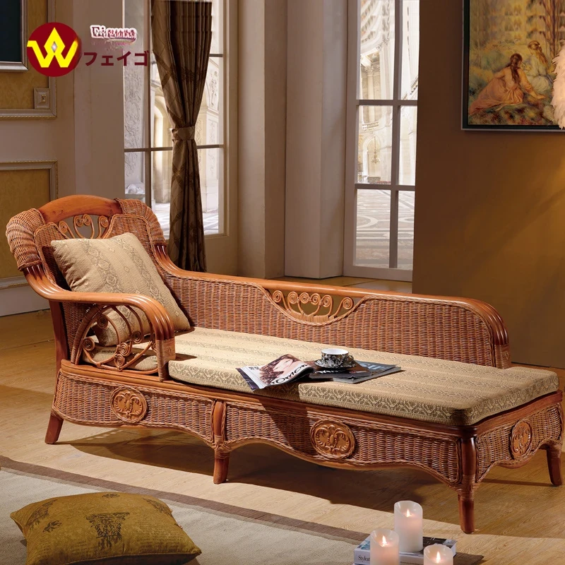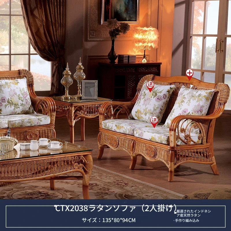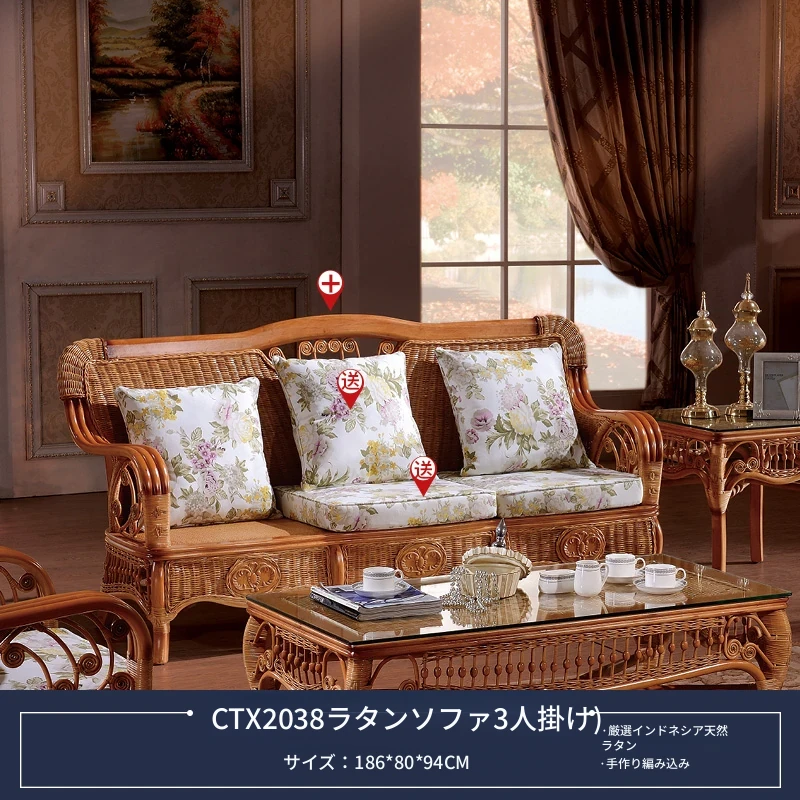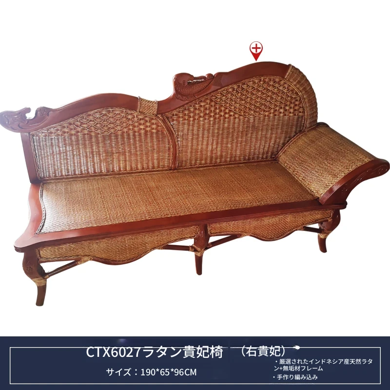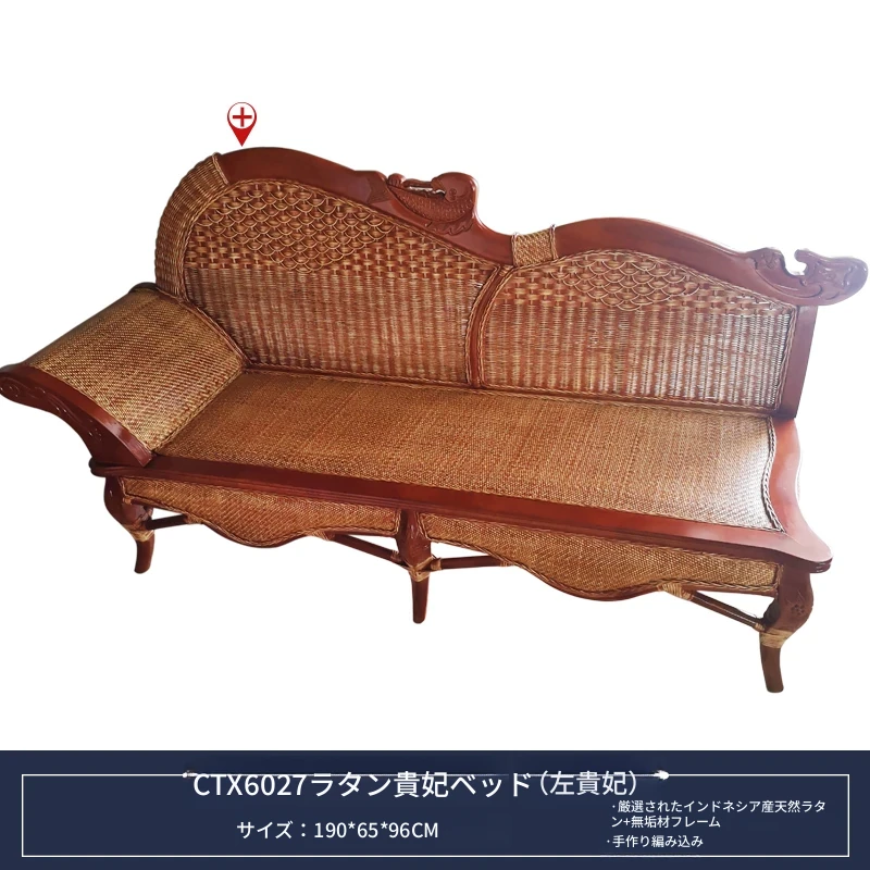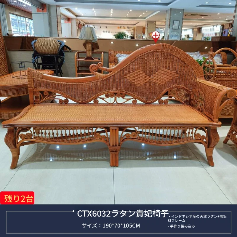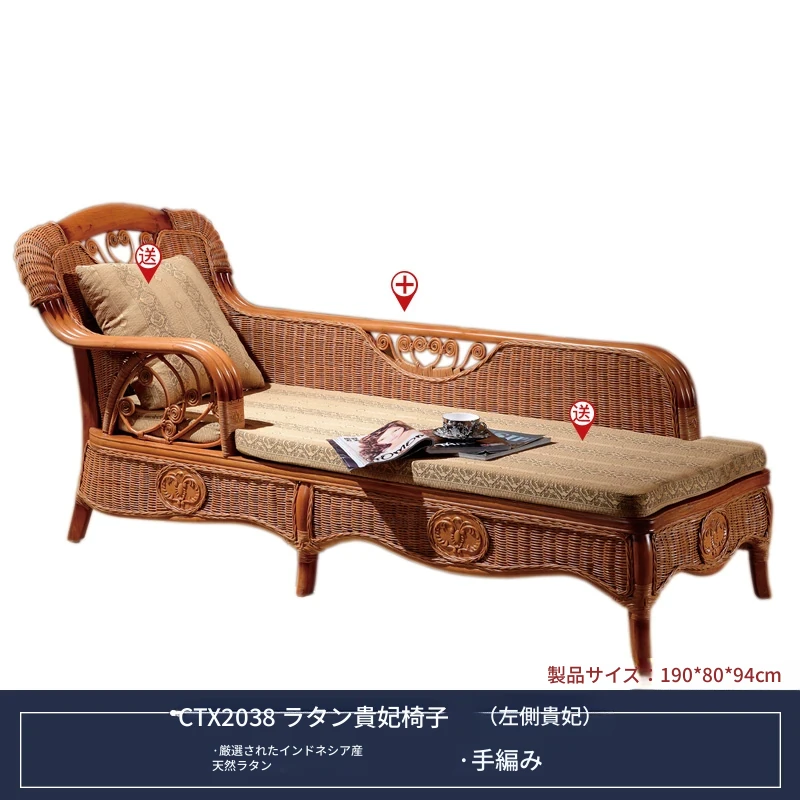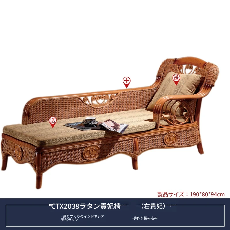 天然インドネシア製ラタンソファとラタンサイドテーブル、エレガントなラタン貴妃椅子付き、快適な一人用ベッドとクッション付き!おしゃれなリビング空間を演出します。