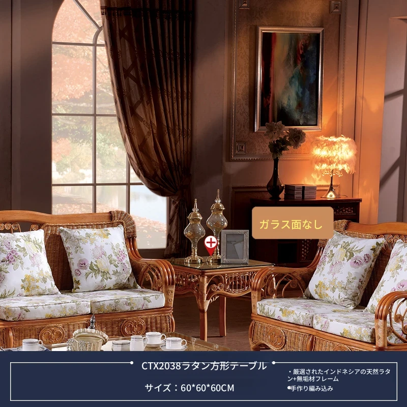 ラタン正方形コーヒーテーブル(ガラスなし)60*60*60
