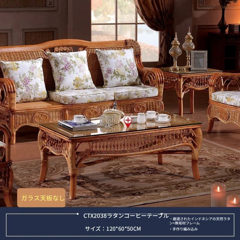 ラタン長方形コーヒーテーブル(ガラスなし)120*60*50